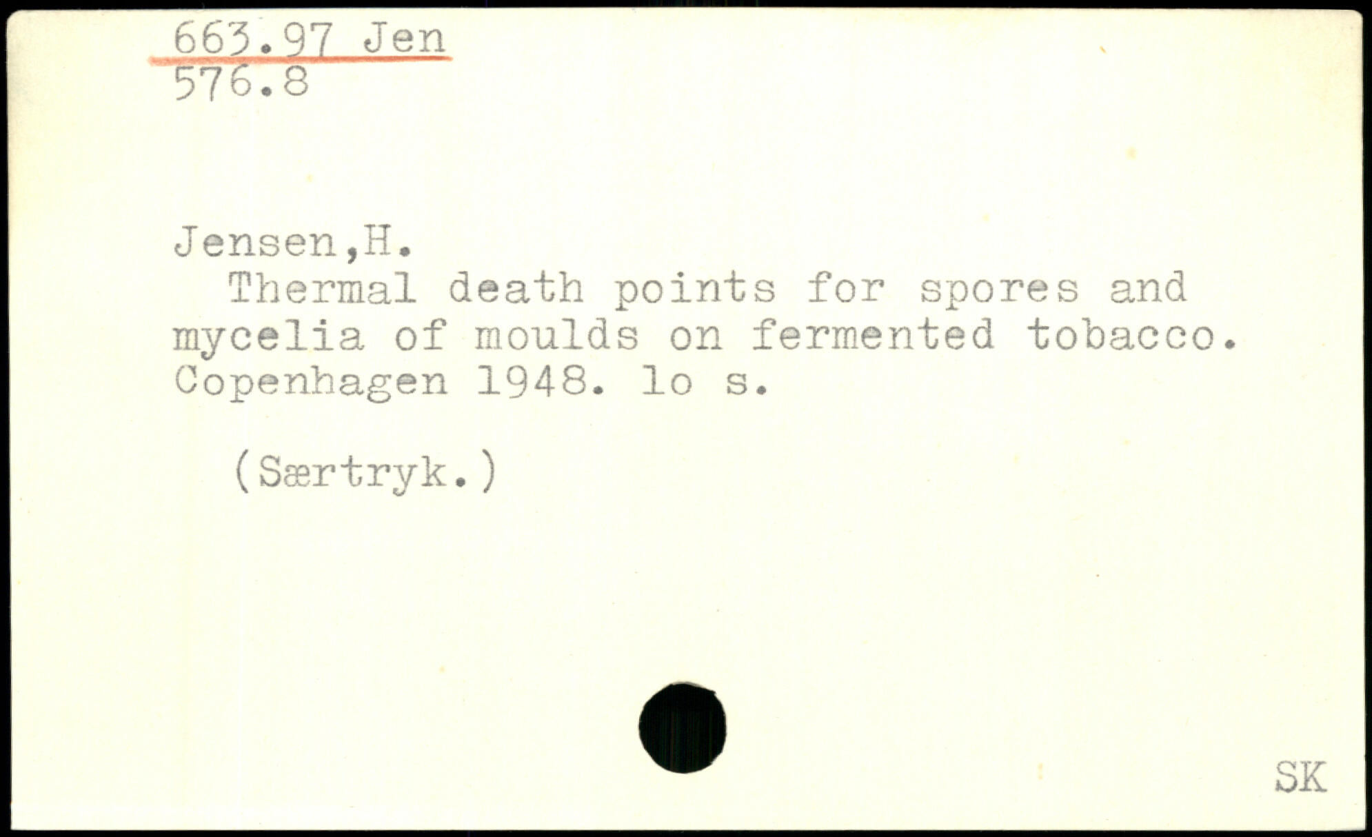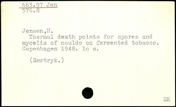 Thermal death points for spores and mycelia of moulds on fermented tobacco.
