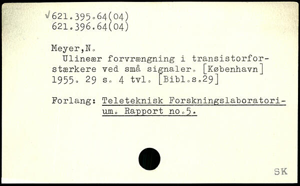 Ulineær forvrængning i transistorforstærkere ved små signaler.