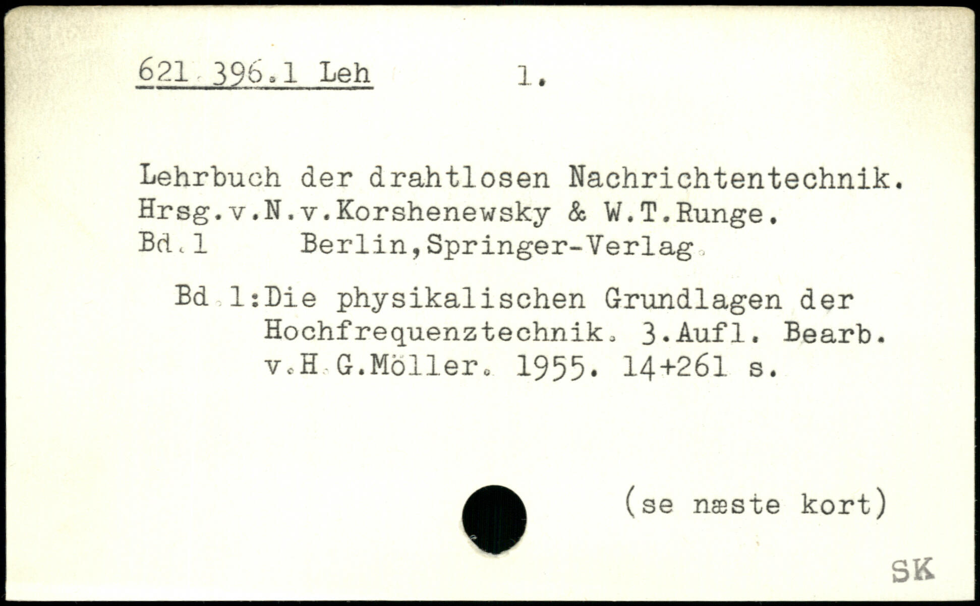 Lehrbuch der drahtlosen Nachrichtentechnik. Hrsg.v.N.v.Korshenewsky & W.T.Runge. Bd.l Berlin,Springer-Verlag Bd l:Die physikalischen Grundlagen der Hochfrequenztechnik.
