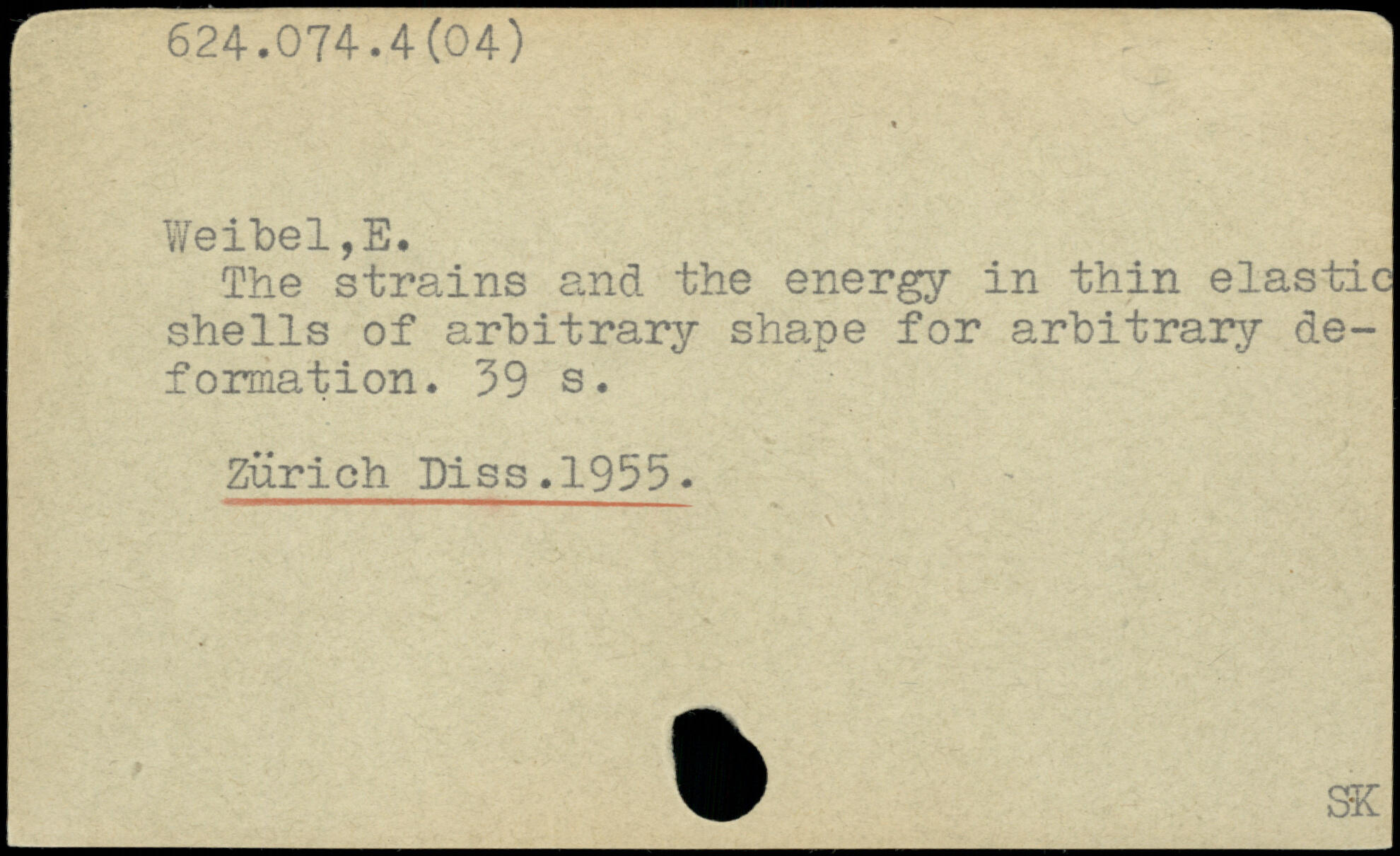 The strains and the energy in thin elastic shells of arbitrary shape for arbitrary deformation.