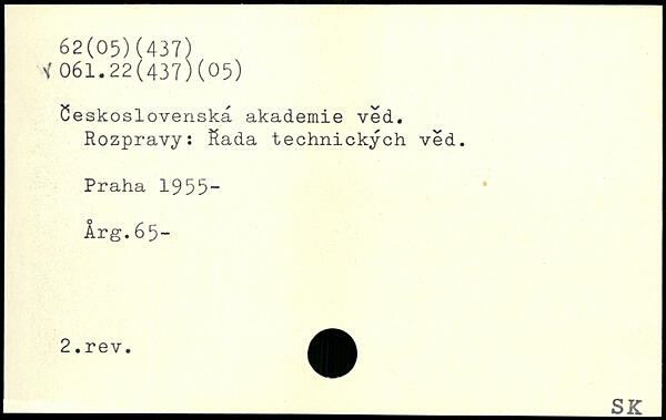 Üeskoslovenska akademie ved. Rozpravy; Rada technickych ved.