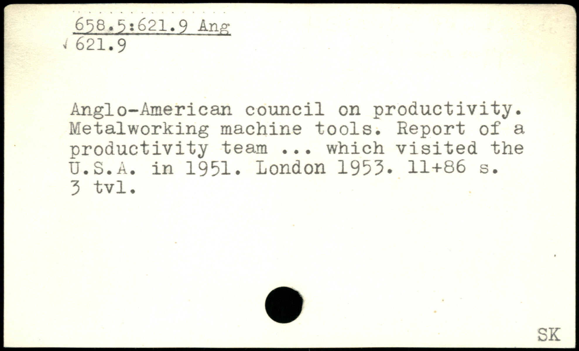 Anglo-American council on productivity. Metalworking machine tools. Report of a productivity team ... which visited the U.S.A. in 1951.