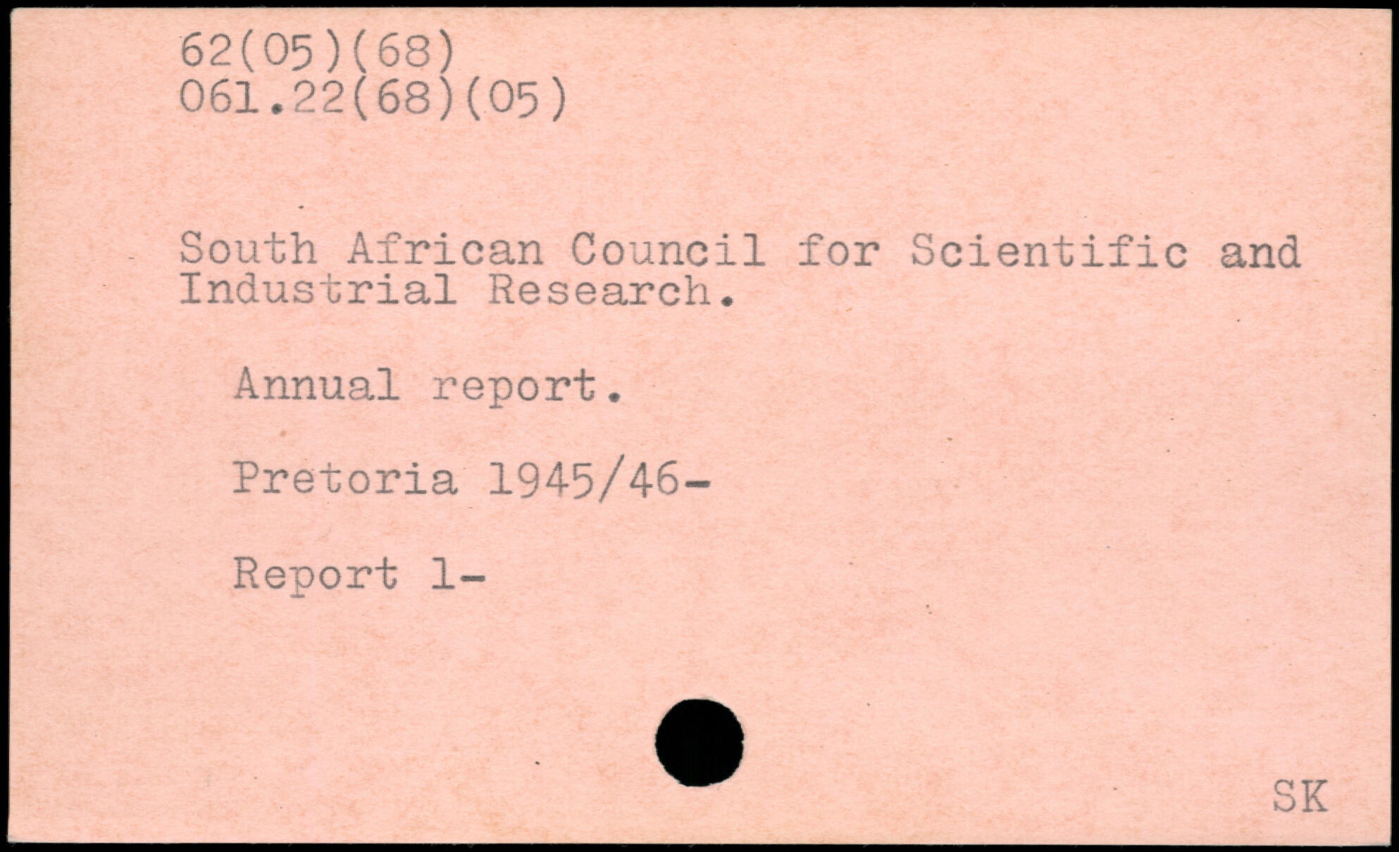 South African Council for Scientific and Industrial Research. Annual report. Pretoria 1945/46- Report 1-