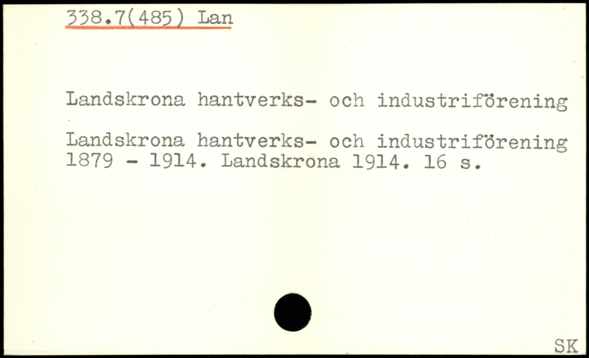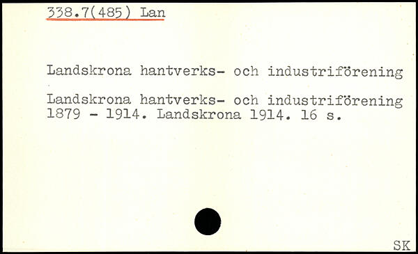 Landskrona hantverks- och industriforening Landskrona hantverks- och industriforening 1879 - 1914. Landskrona 1914.