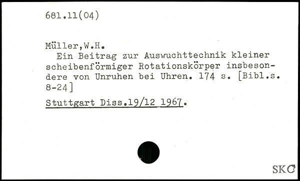 Ein Beitrag zur Ausvuchttechnik kleiner scheibenförmiger Rotationskörper insbesondere von Unruhen bei Uhren.