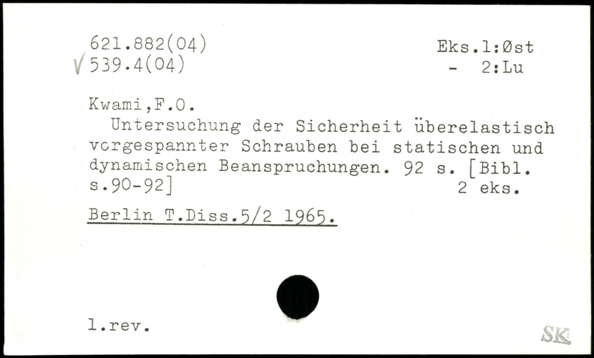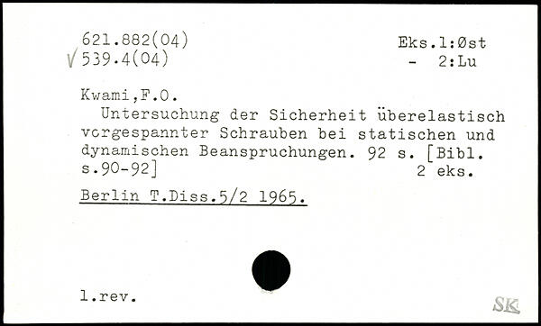 Untersuchung der Sicherheit überelastisch vorgespannter Schrauben bei statischen und dynamischen Beanspruchungen.