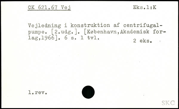 Vejledning i konstruktion af centrifugalpumpe. [2,udg.].