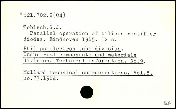Parallel operation of silicon rectifier diodes. Eindhoven 1965.