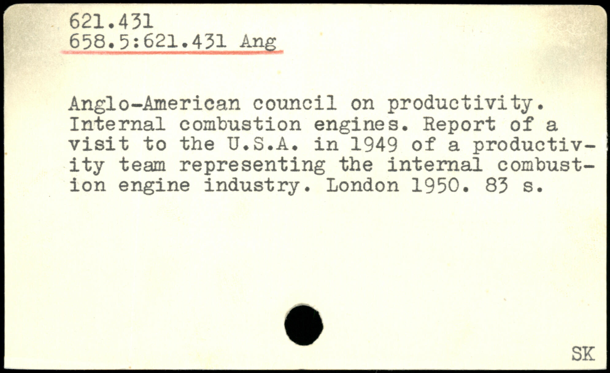Anglo-American council on productivity. Internal combustion engines. Report of a visit to the U.S.A. in 1949 of a productivity team representing the internal combustion engine industry.
