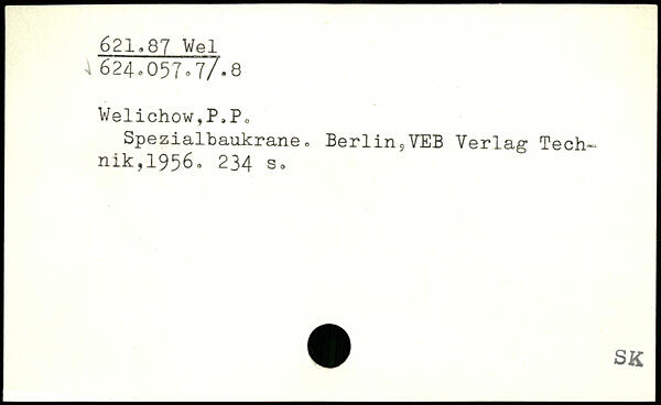V/elichow,P,Pe Spezialbaukrane. Berlin?VEB Verlag Tech-nik,1956.