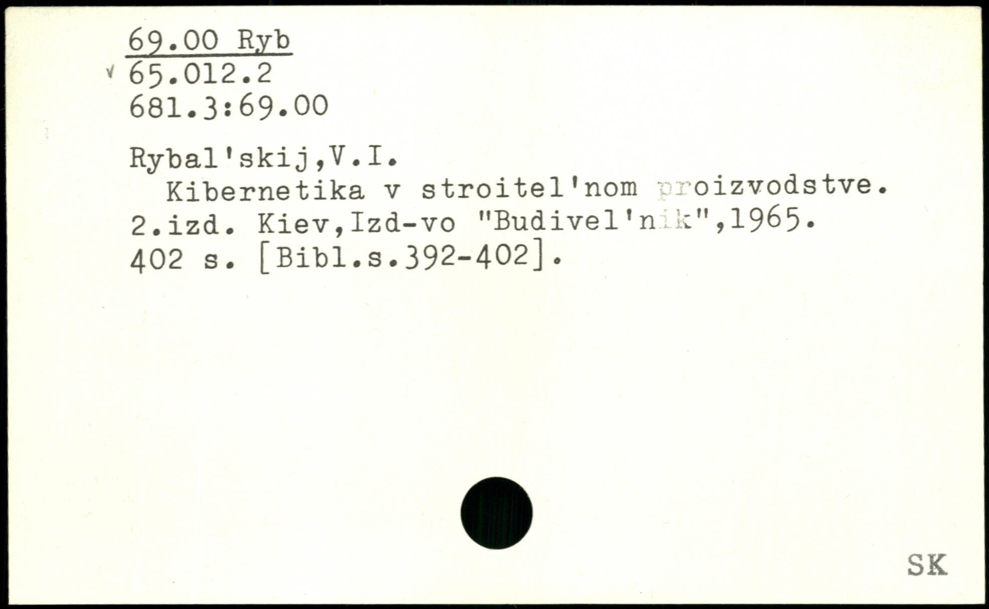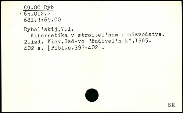 Rybal? skij,V.I. Kibernetika v stroitel'nom proizvodstve. 2. izd. Kiev, Izd-vo "Budivel ' n.ik" , 1965.