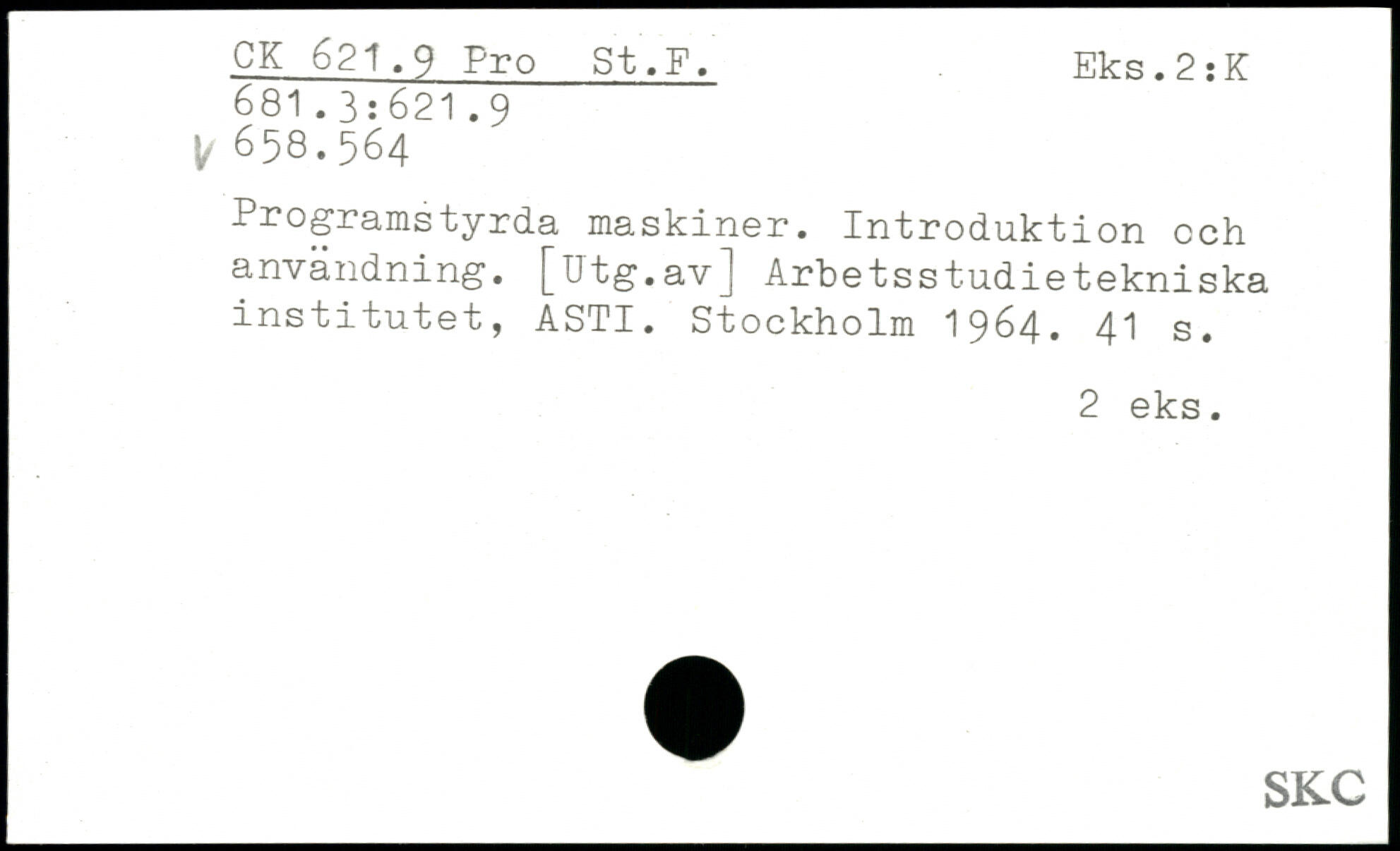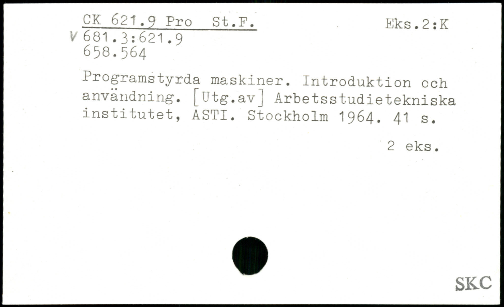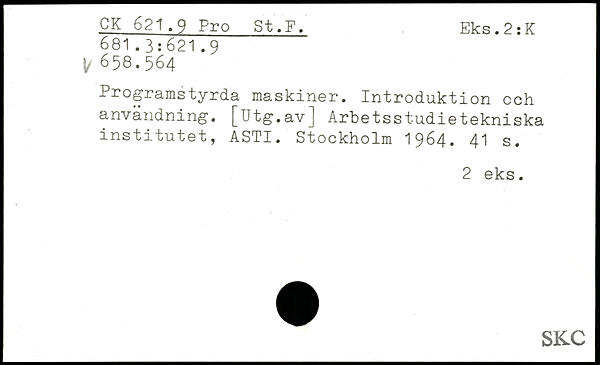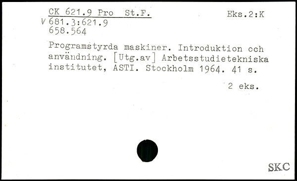 Programstyrda maskiner. Introduktion cch användning. [Utg.av] Arbetsstudietekniska institutet, ASTI.
