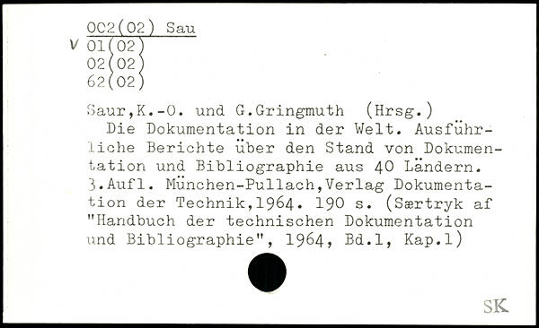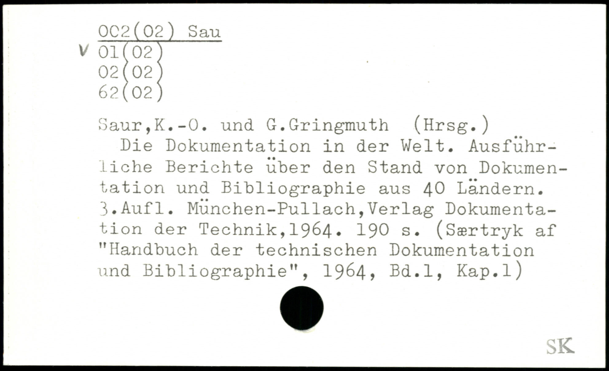 Die Dokumentation in der Welt. Ausführliche Berichte über den Stand von Dokumentation und Bibliographie aus 40 Ländern. S.Aufl.