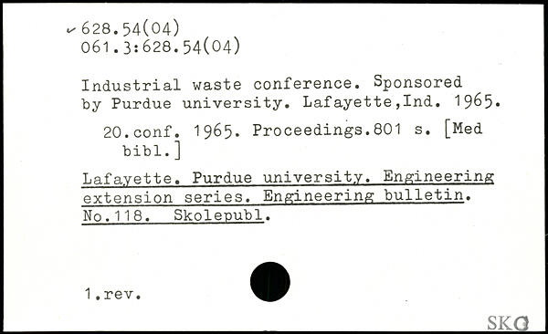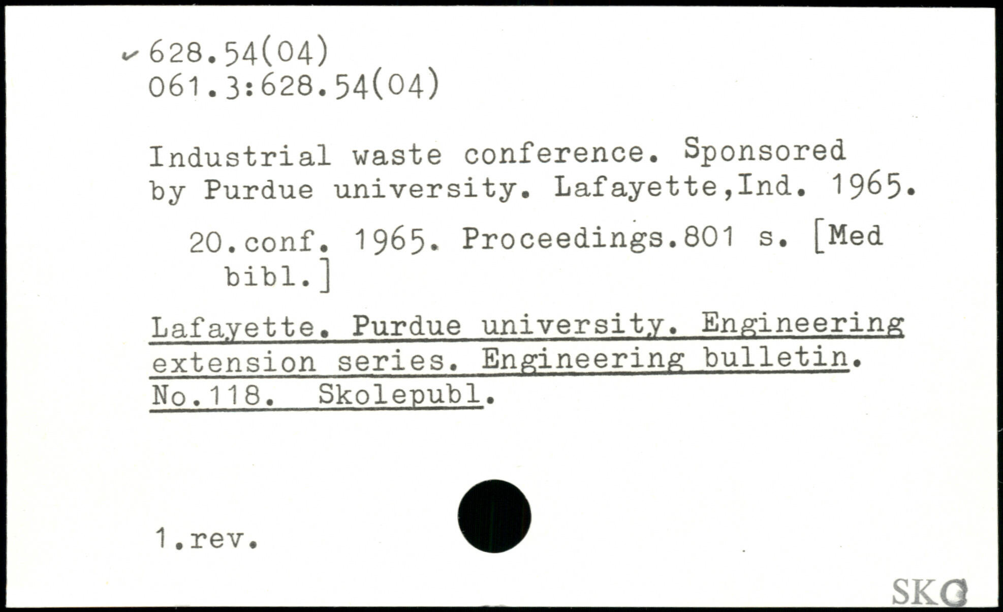 Industrial waste conference. Sponsored by Purdue university. Lafayette,Ind. 19^5, 20.conf. 1965. Proceedings.