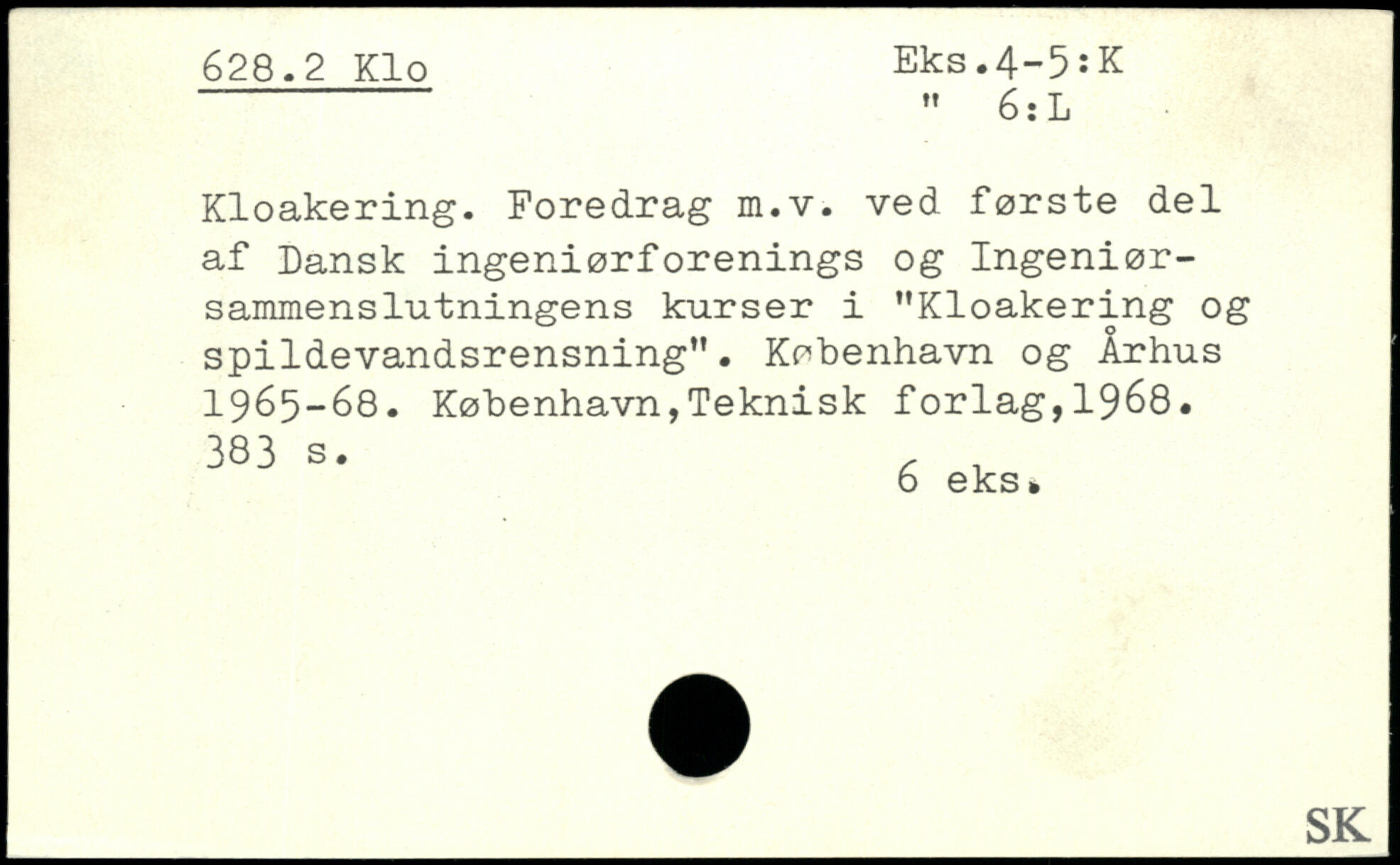 Kloakering. Foredrag m.v. ved første del af Dansk ingeniørforenings og Ingeniør- sammenslutningens kurser i "Kloakering og spildevandsrensning". København og Århus 1965-68.
