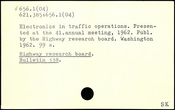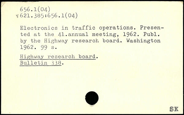 Electronics in traffic operations. Presented at the 41-annual meeting, 1962.