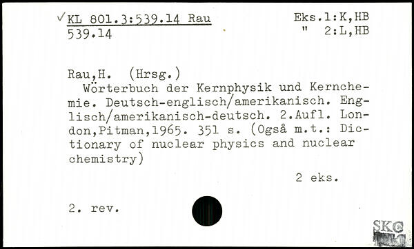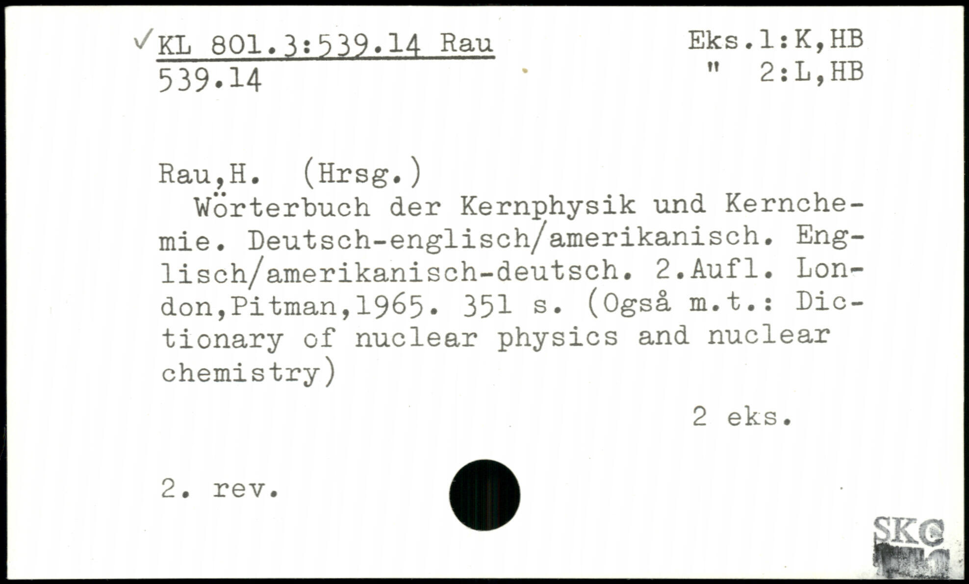 Wörterbuch der Kernphysik und Kernchemie. Deutsch-englisch/amerikanisch. Eng-lisch/amerikanisch-deutsch.