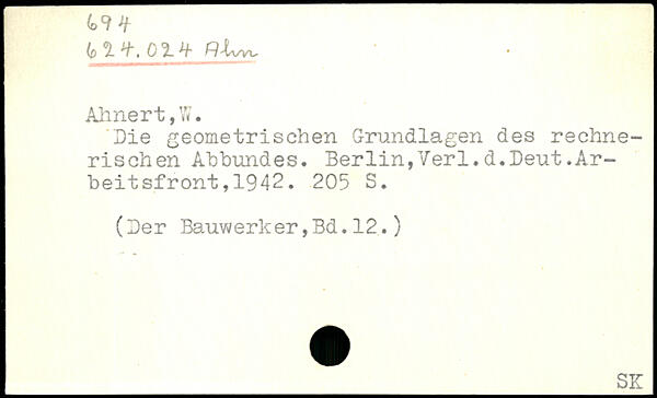 Die geometrischen Grundlagen des rechnerischen Abbundes. Berlin,Verl.d.Deut.Arbeitsfront ,1942.