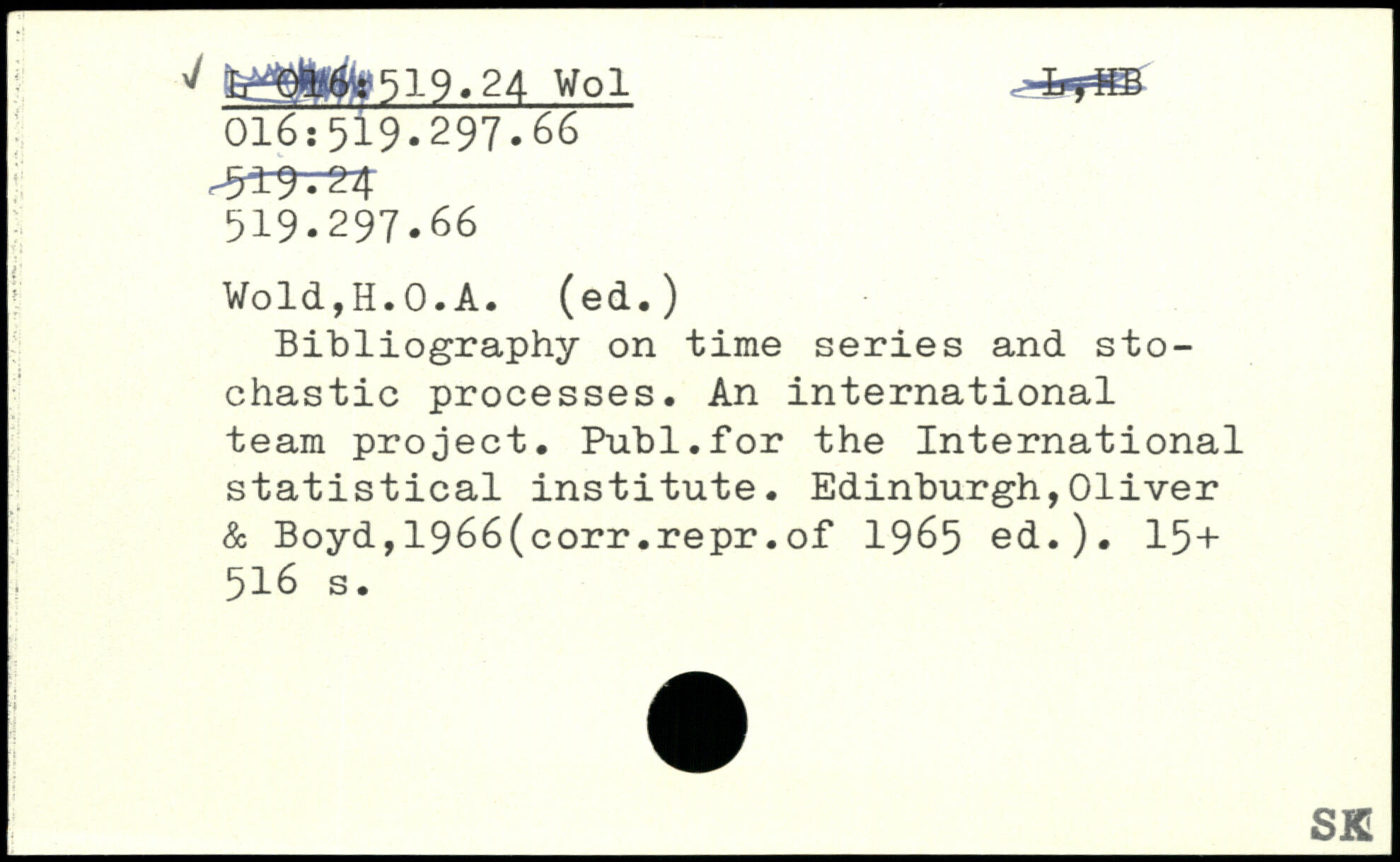 Bibliography on time series and stochastic processes. An international team project. Publ.for the International statistical institute.
