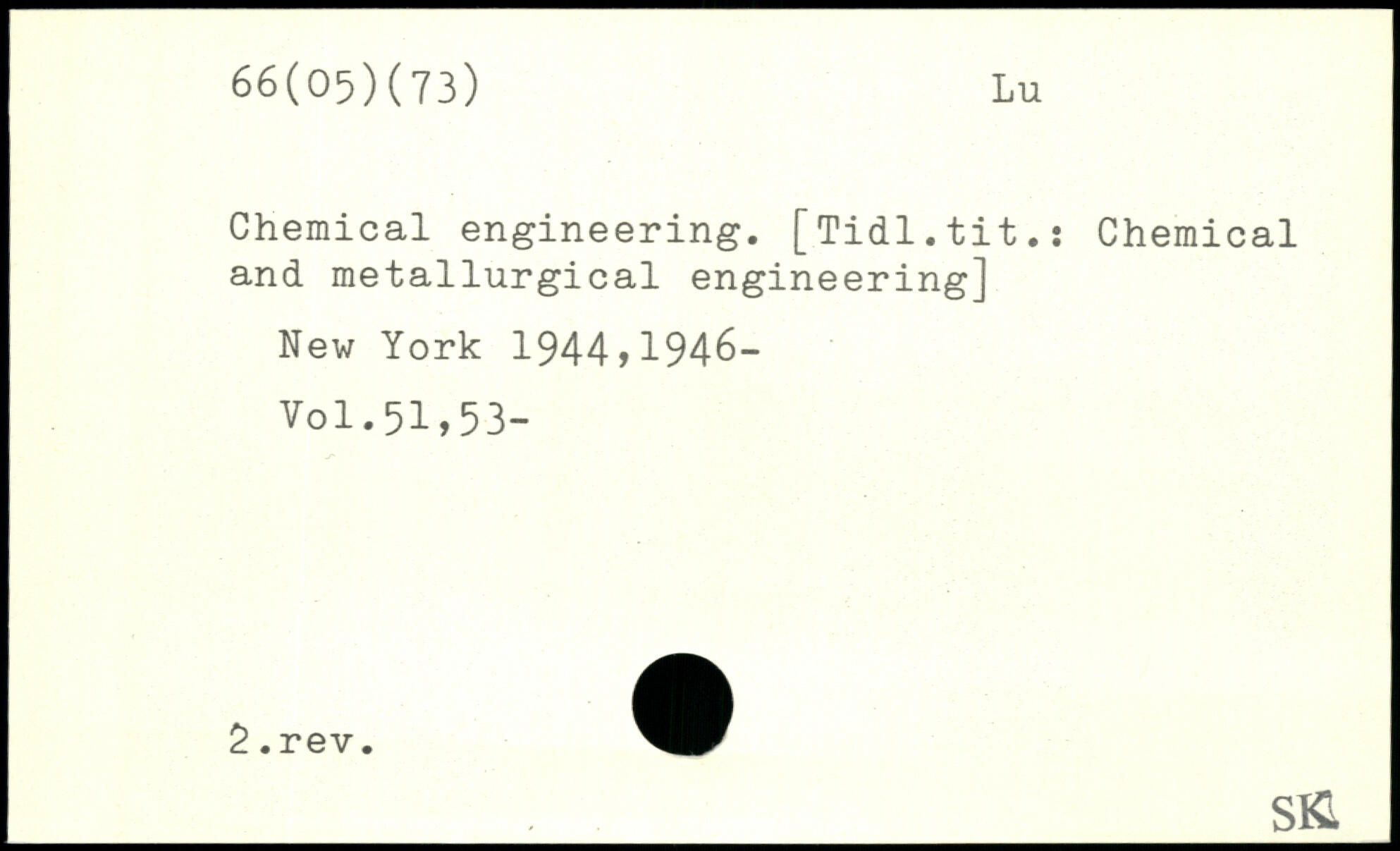 Chemical engineering. [Tidl.tit.: Chemical and metallurgical engineering]