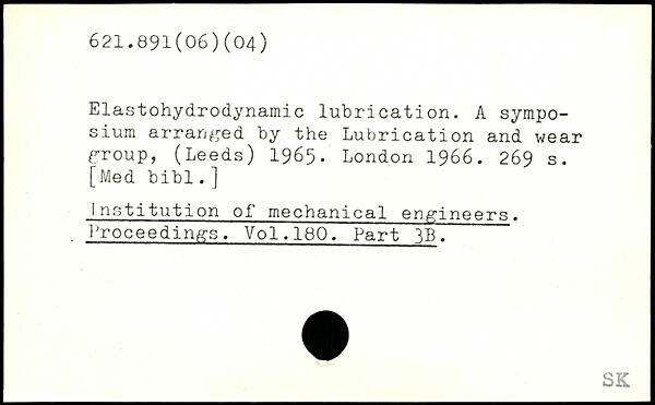 Elastohydrodynamic lubrication. A symposium arranged by the Lubrication and wear group, (Leeds) 1965.