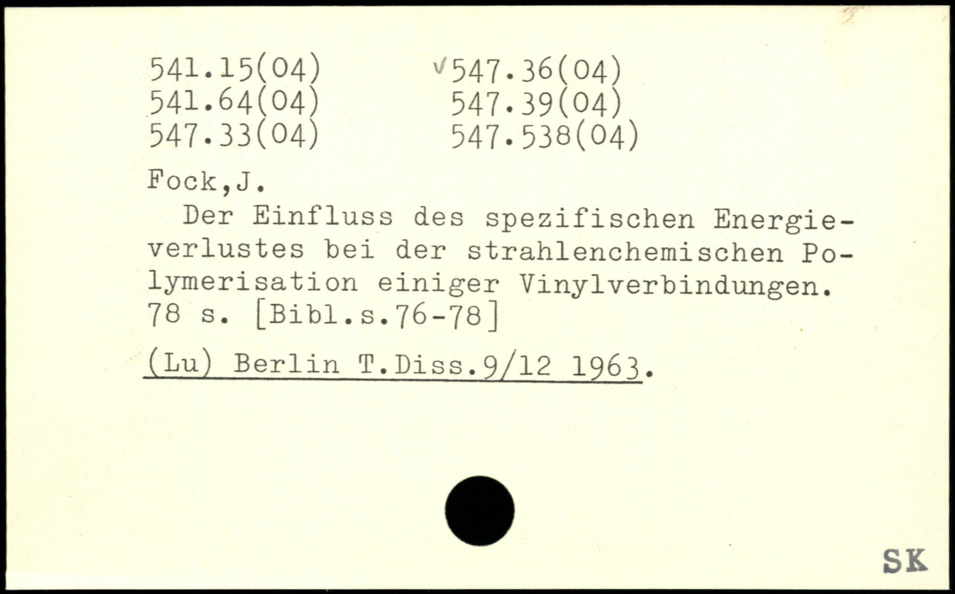 Der Einfluss des spezifischen Energieverlustes bei der strahlenchemischen Polymerisation einiger Vinylverbindungen.