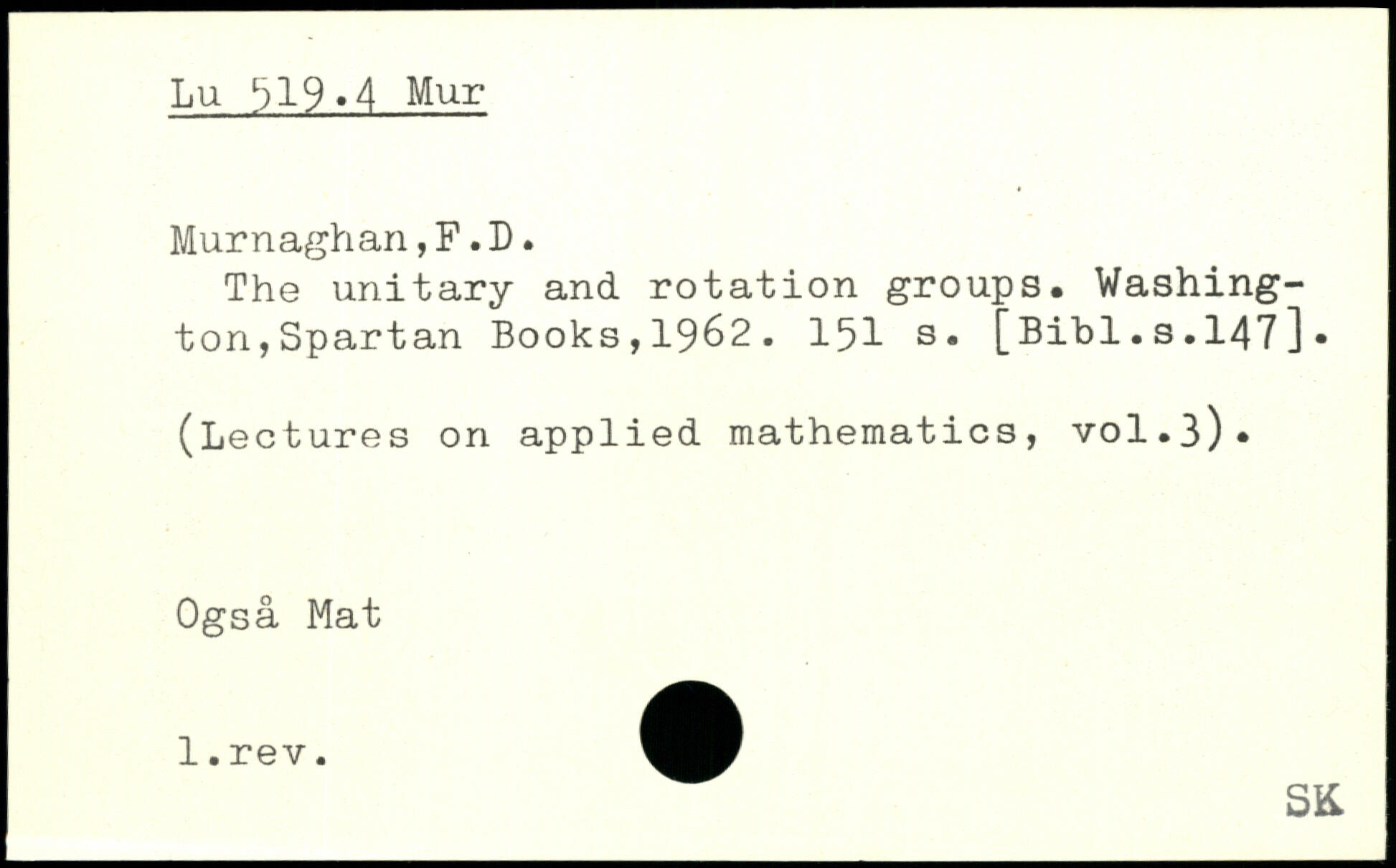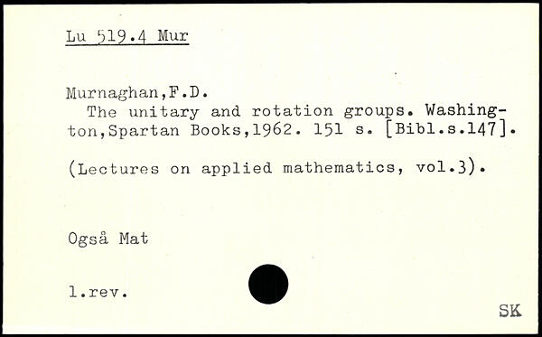 The unitary and rotation groups. Washing-tonjSpartan Books, 1962.