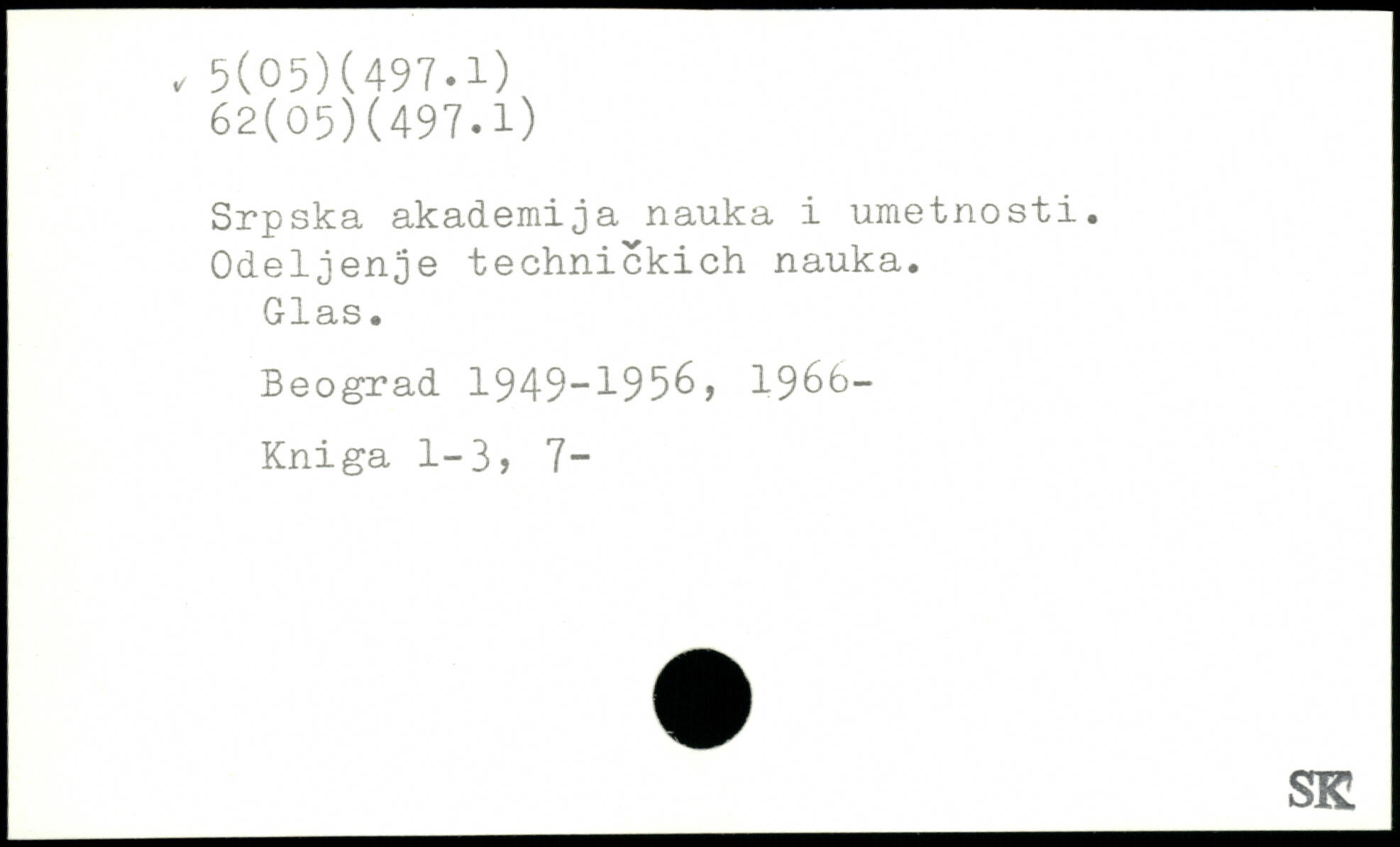 Srpska akademija nauka i umetnosti. Odeljenje technickich nauka. Glas.