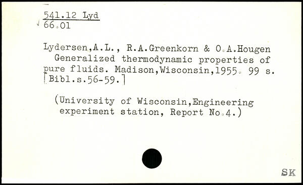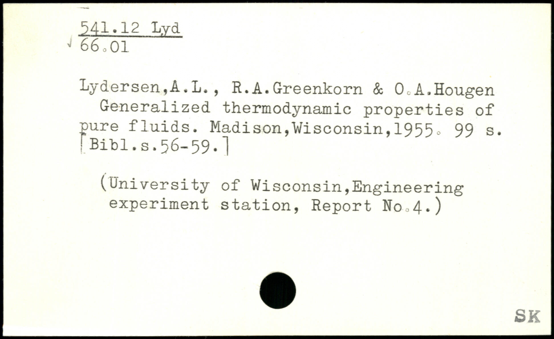 Lydersen,A.L., R.A.Greenkorn & ChA.Hougen Generalized thermodynamic properties of pure fluids.