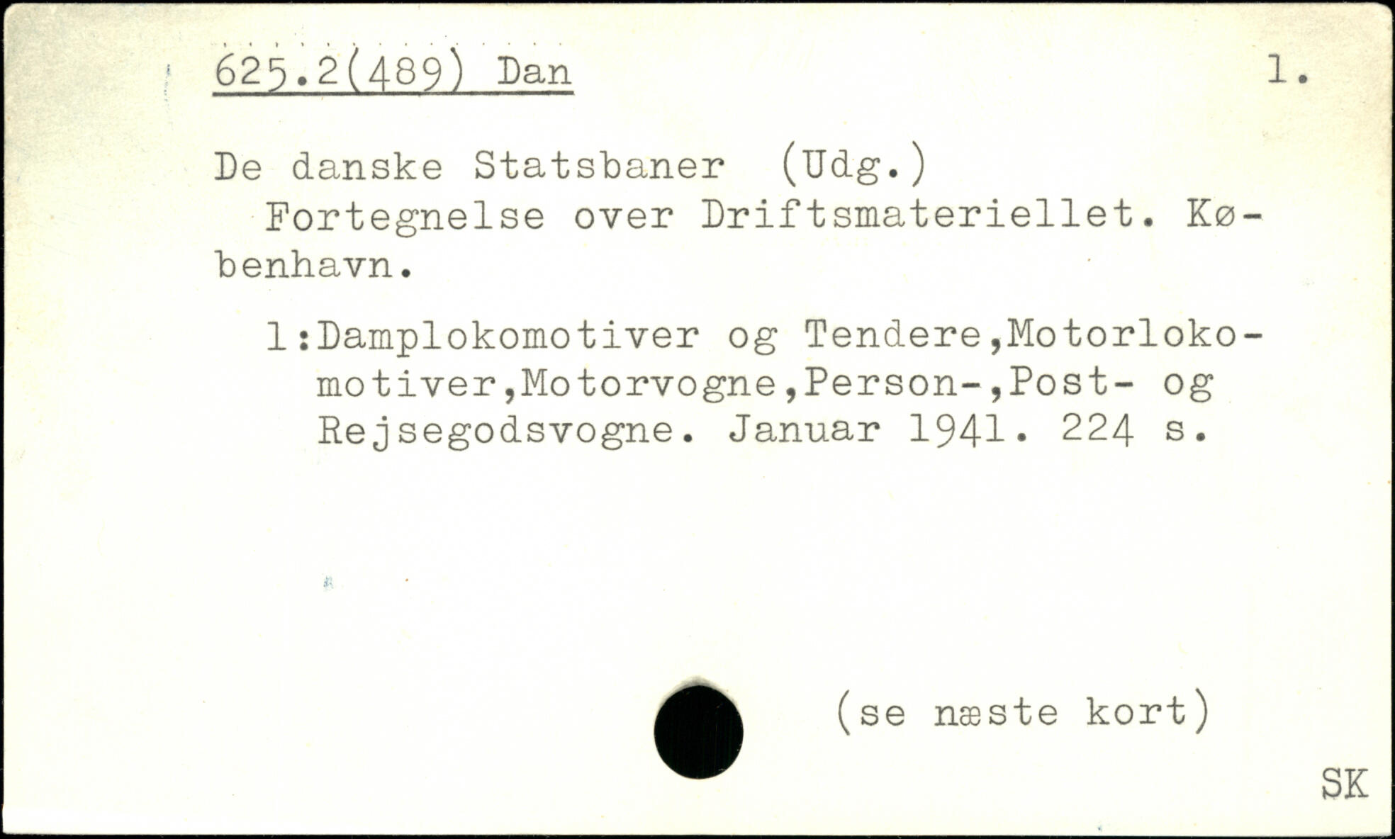 De danske Statsbaner (Udg.) Fortegnelse over Driftsmateriellet. København. 1:Damplokomotiver og Tendere,Motorlokomotiver ,Motorvogne,Person-,Post- og Rejsegodsvogne. Januar 1941.