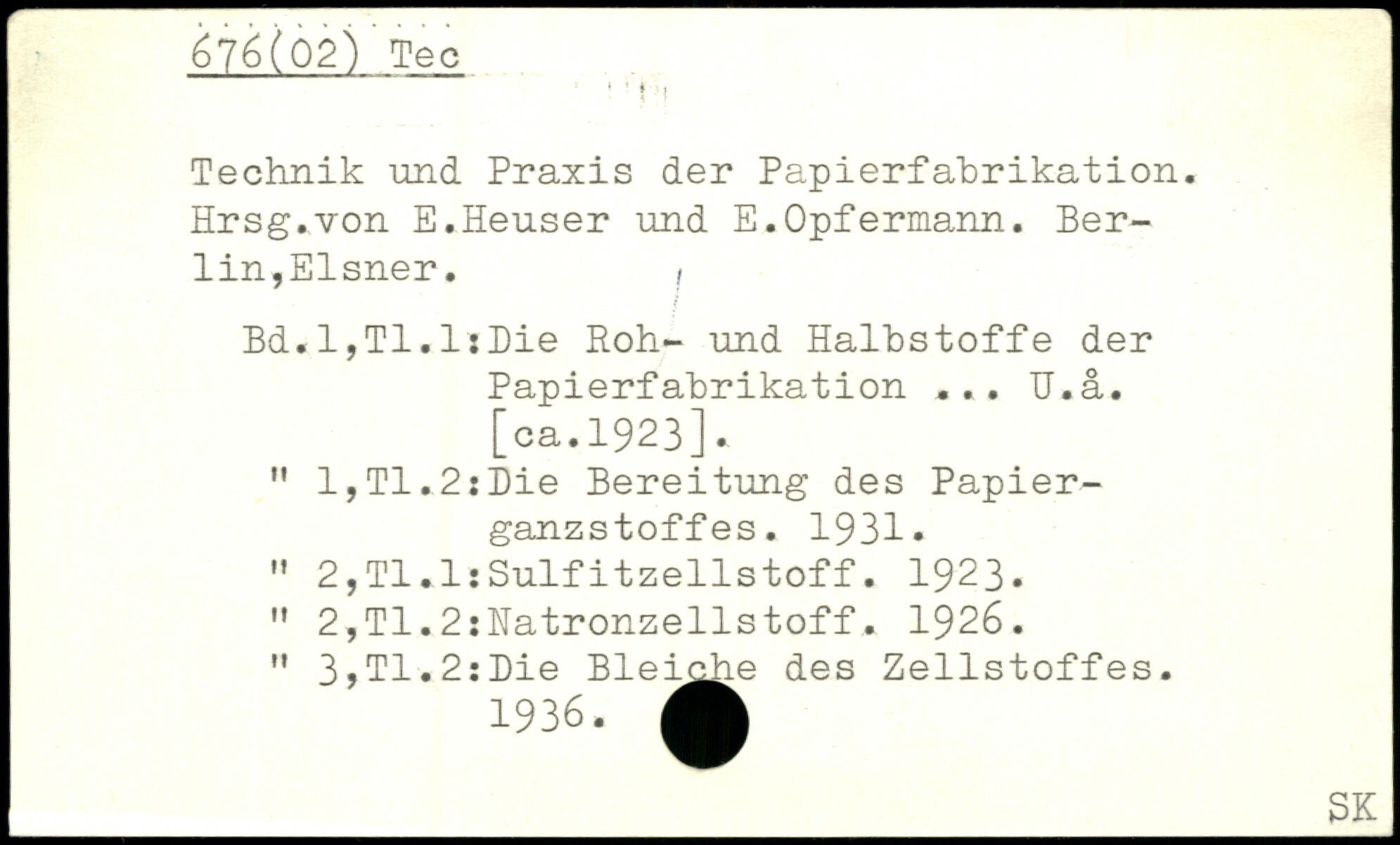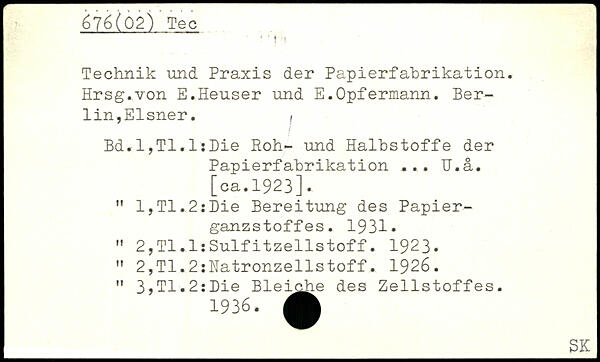 Technik und Praxis der Papierfahrikation. Hrsg.von E.Heuser und E.Opfermann. Berlin,Elsner. , Bd.l,Tl.l:Die Roh- und Halhstoffe der Papierfahrikation ... U.ä.