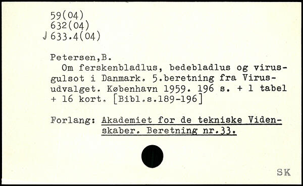 Om ferskenbladlus, bedebladlus og virusgulsot i Danmark. 5,beretning fra Virusudvalget.