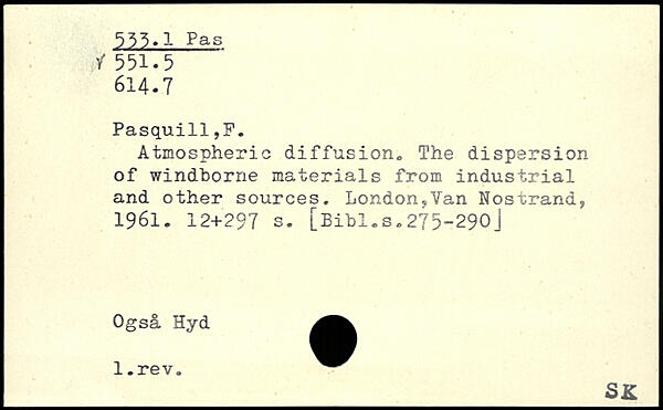 Atmospheric diffusion. The dispersion of windborne materials from industrial and other sources.