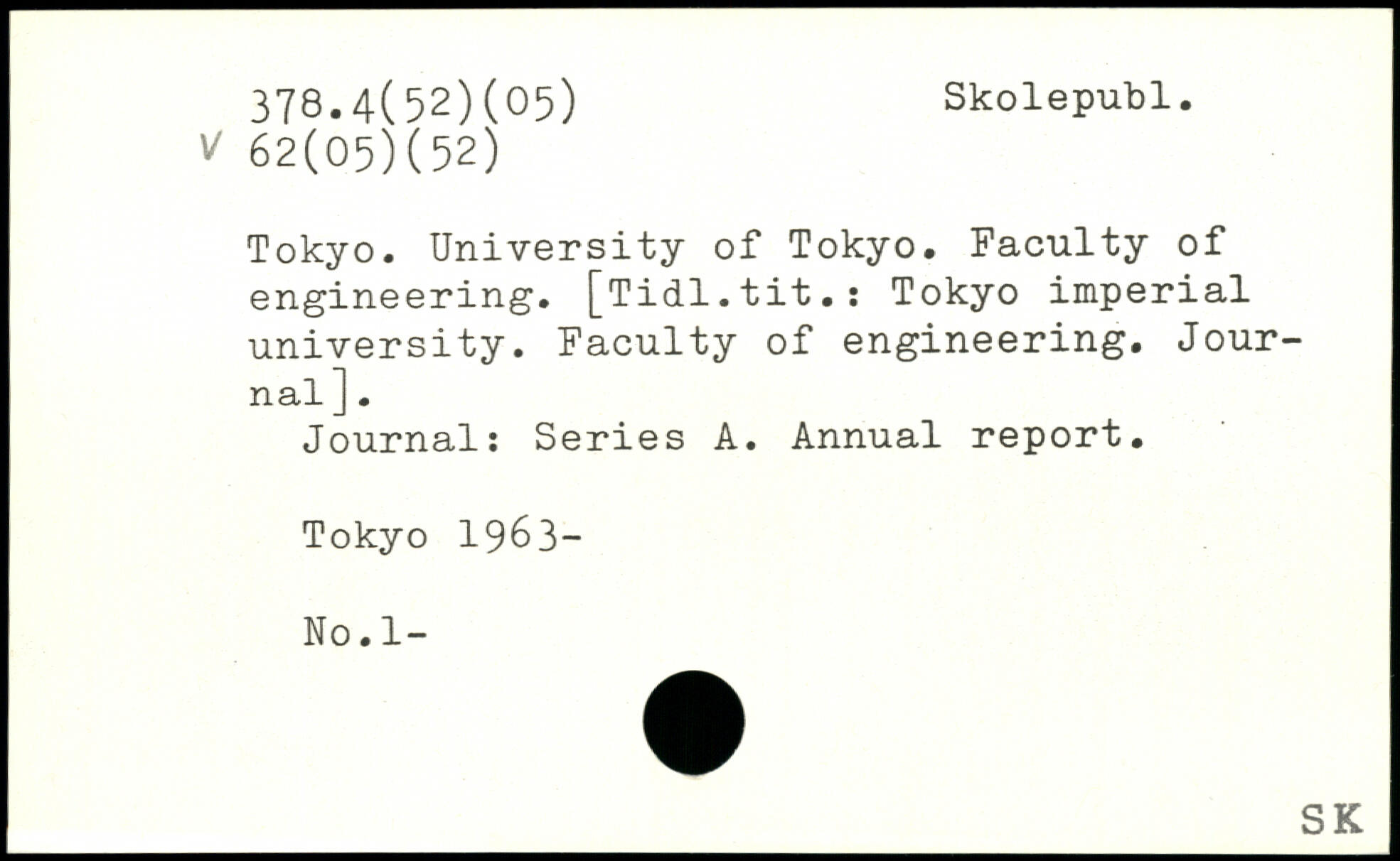 Tokyo. University of Tokyo. Faculty of engineering. [Tidl.tit.s Tokyo imperial university. Faculty of engineering. Journal ]. Journal: Series A. Annual report.