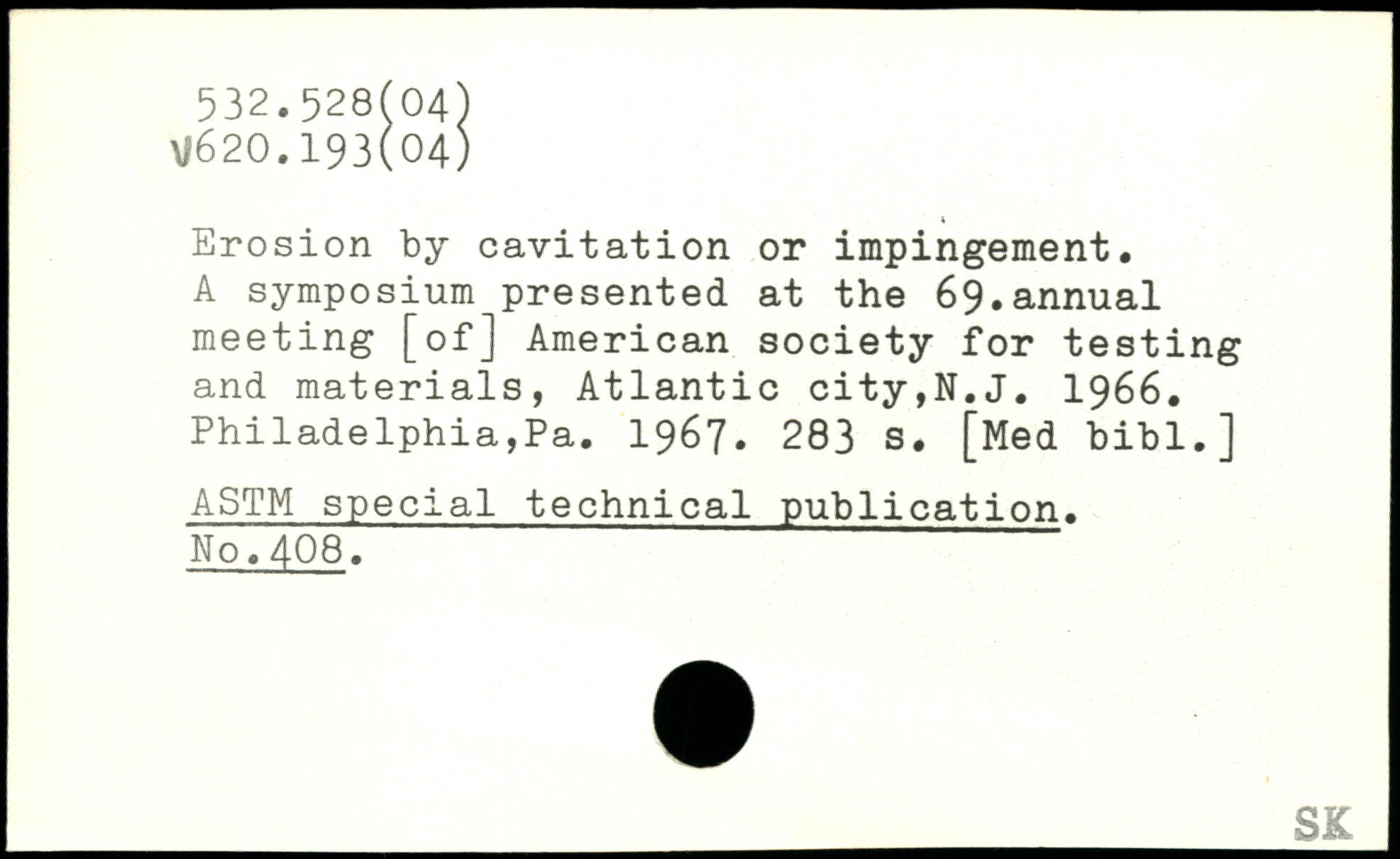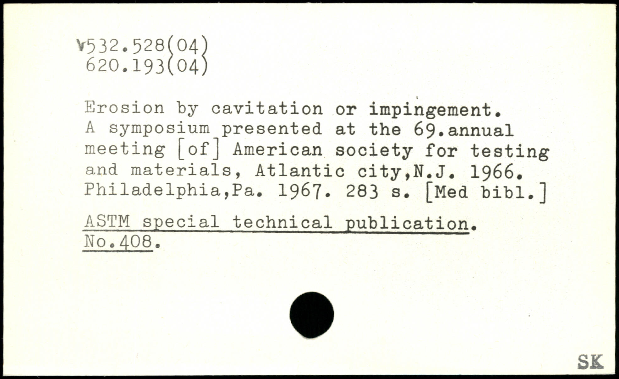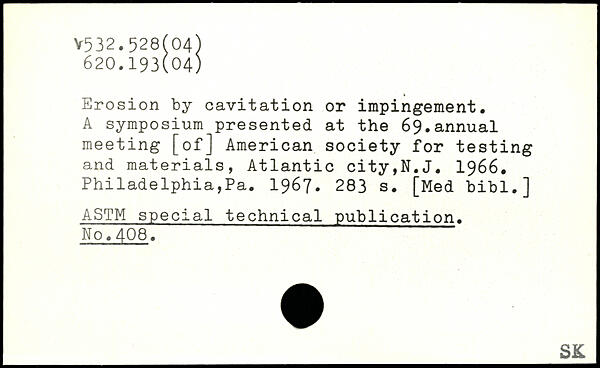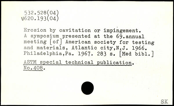 Erosion by cavitation or impingement. A symposium presented at the 69.annual meeting [of] American society for testing and materials, Atlantic city,N.J. 1966. Philadelphia,Pa. 1967.