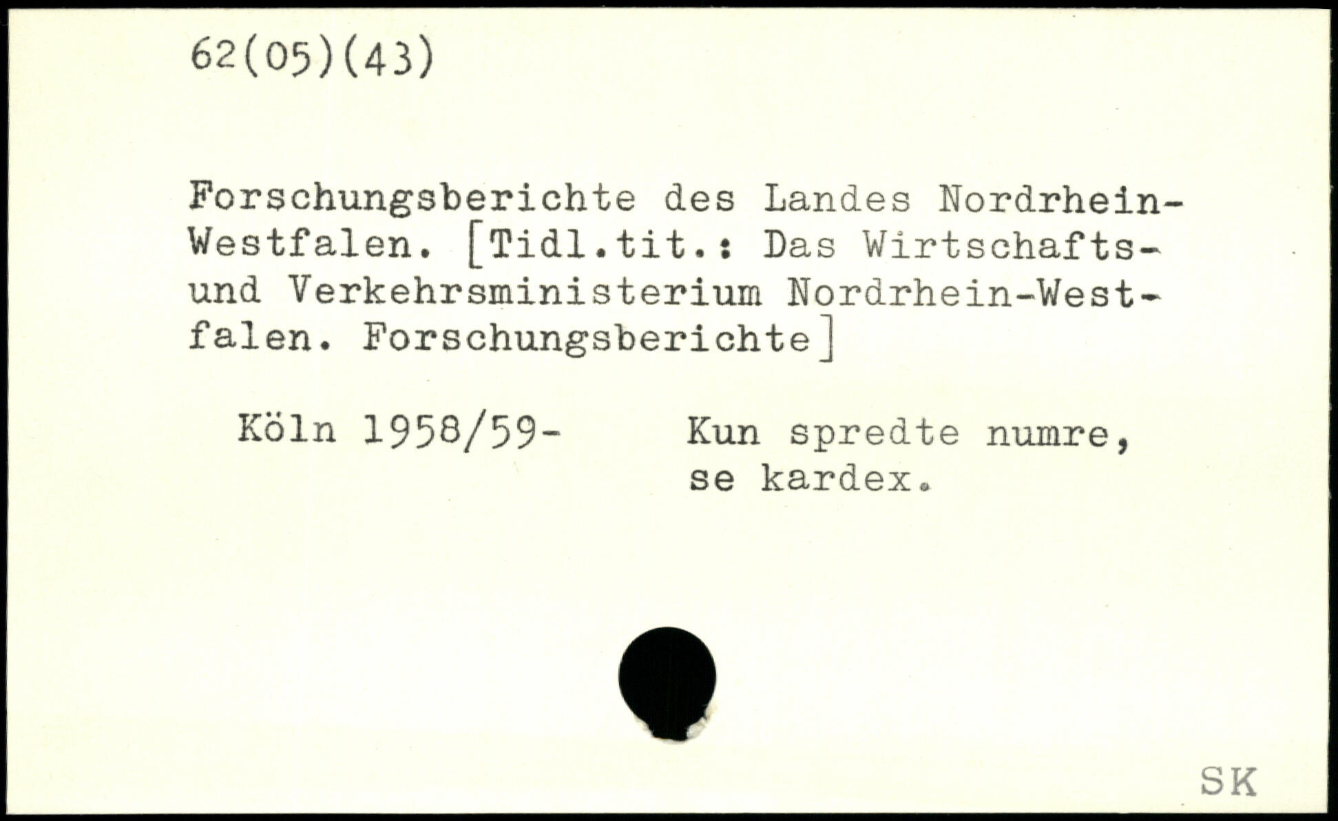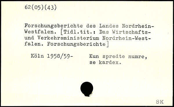 Forschungsberichte des Landes Nordrhein-Westfalen. [Tidl.tit.: Das Wirtschafts-und Yerkehrsministerium Nordrhein-Westfalen. Forschungsberichte]