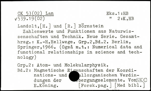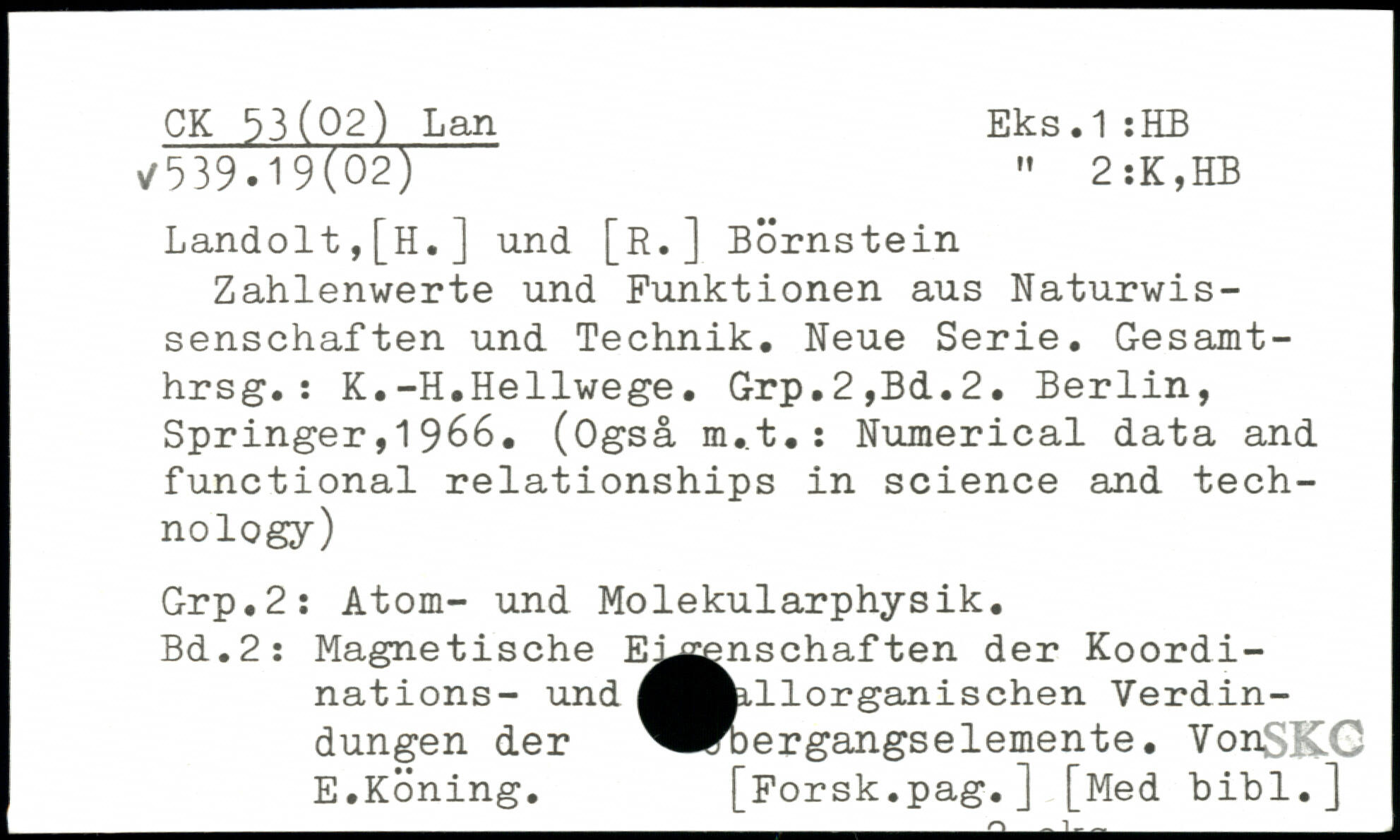 Landolt,[H.] und [R.] Börnstein Zahlenwerte und Funktionen aus Naturwissenschaften und Technik. Neue Serie. Gesamt-hrsg.: K.-H.Hellwege. Grp.2