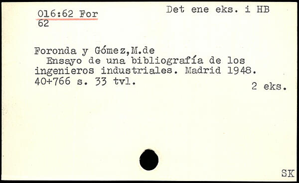 Foronda y Gomez,M.de Ensayo de una bibliografia de los ingenieros industriales.