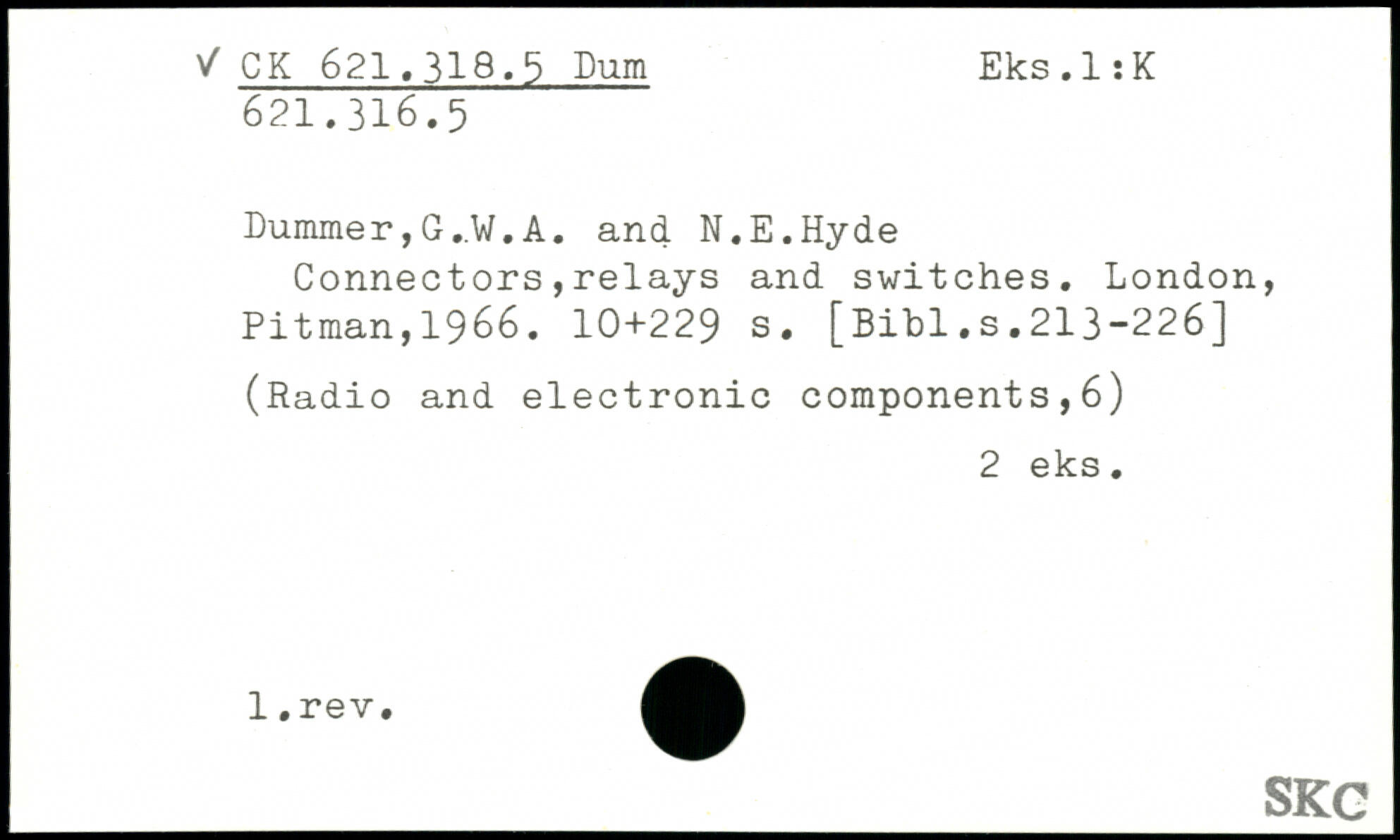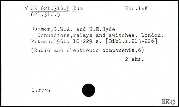 Dummer,G..W.A. and N.E.Hyde Connectors,relays and switches.