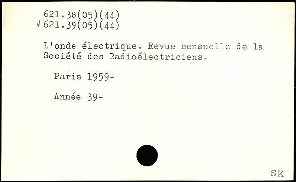 L’onde électrique. Revue mensuelle de la Société des Radioélectriciens