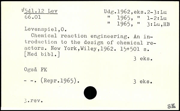 Chemical reaction engineering. An introduction to the design of chemical reactors.
