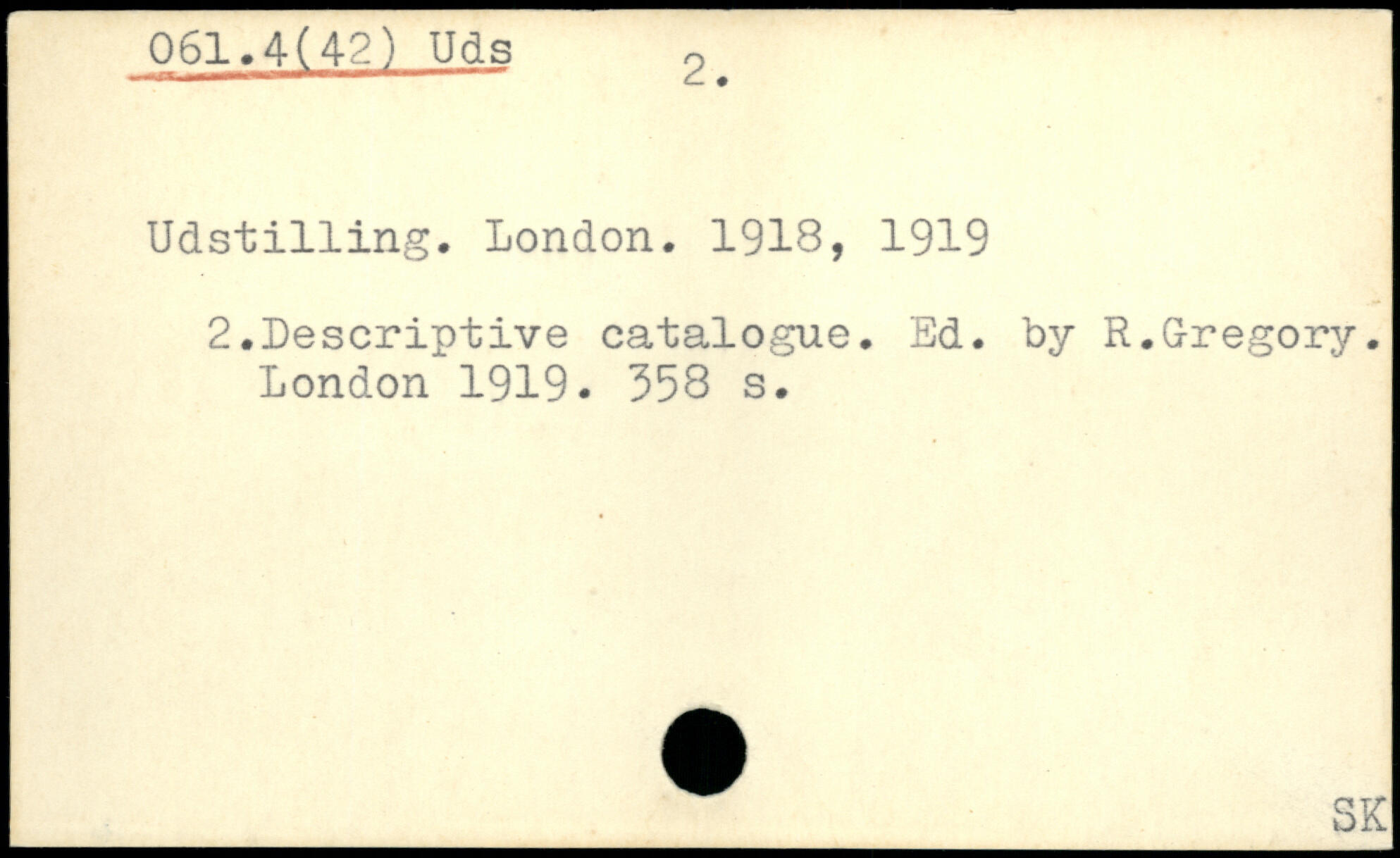 Udst1111ng. London. 1918, 1919 2.Descriptive catalogue. Ed. by R.Gregory.
