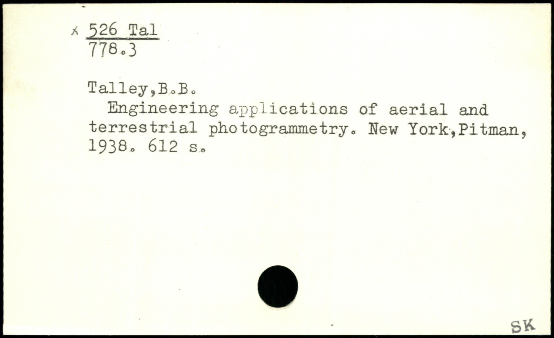 Talley,B^Bo Engineering applications of aerial and terrestrial photogranmietry.
