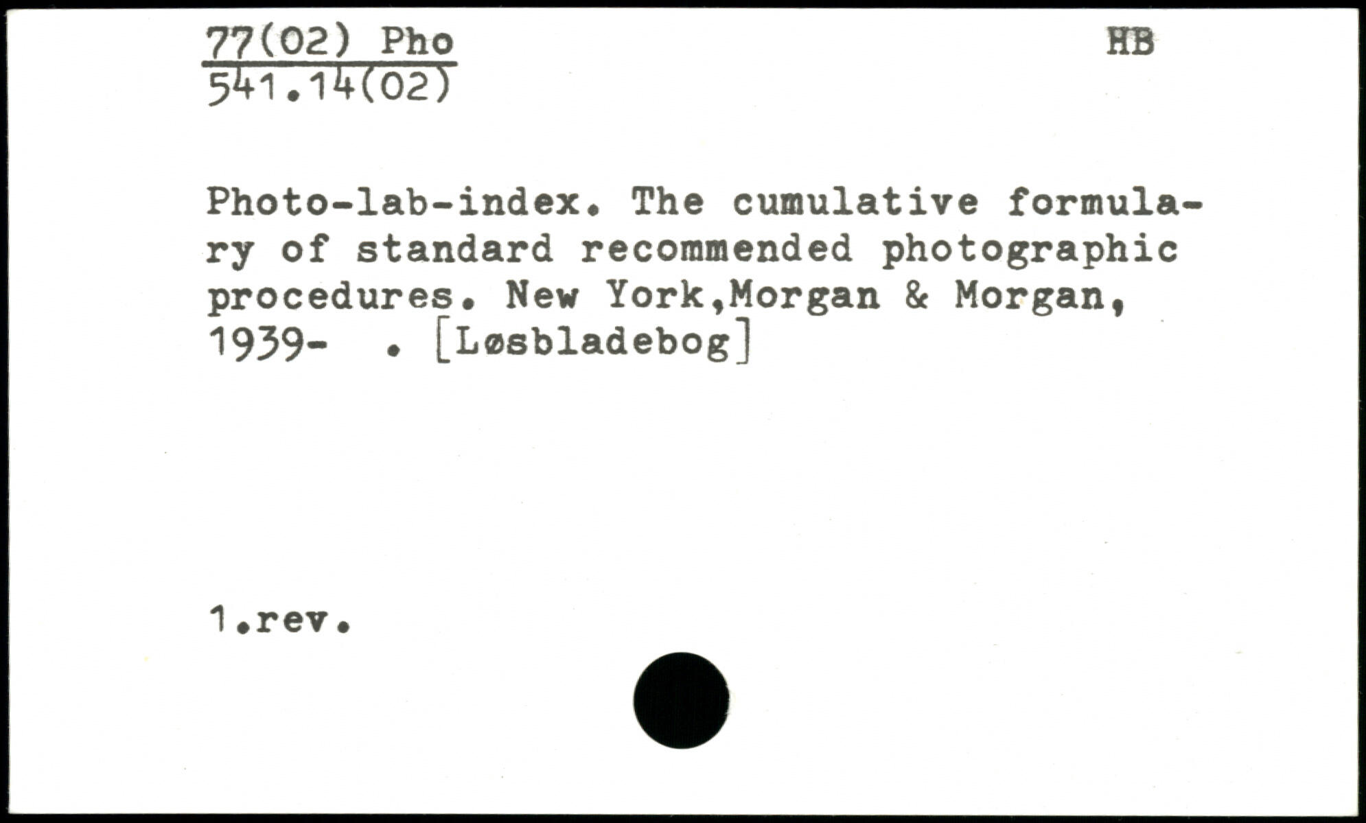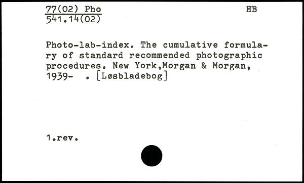 Photo-lab-index, The cumulative formulary of standard recommended photographic procedures.