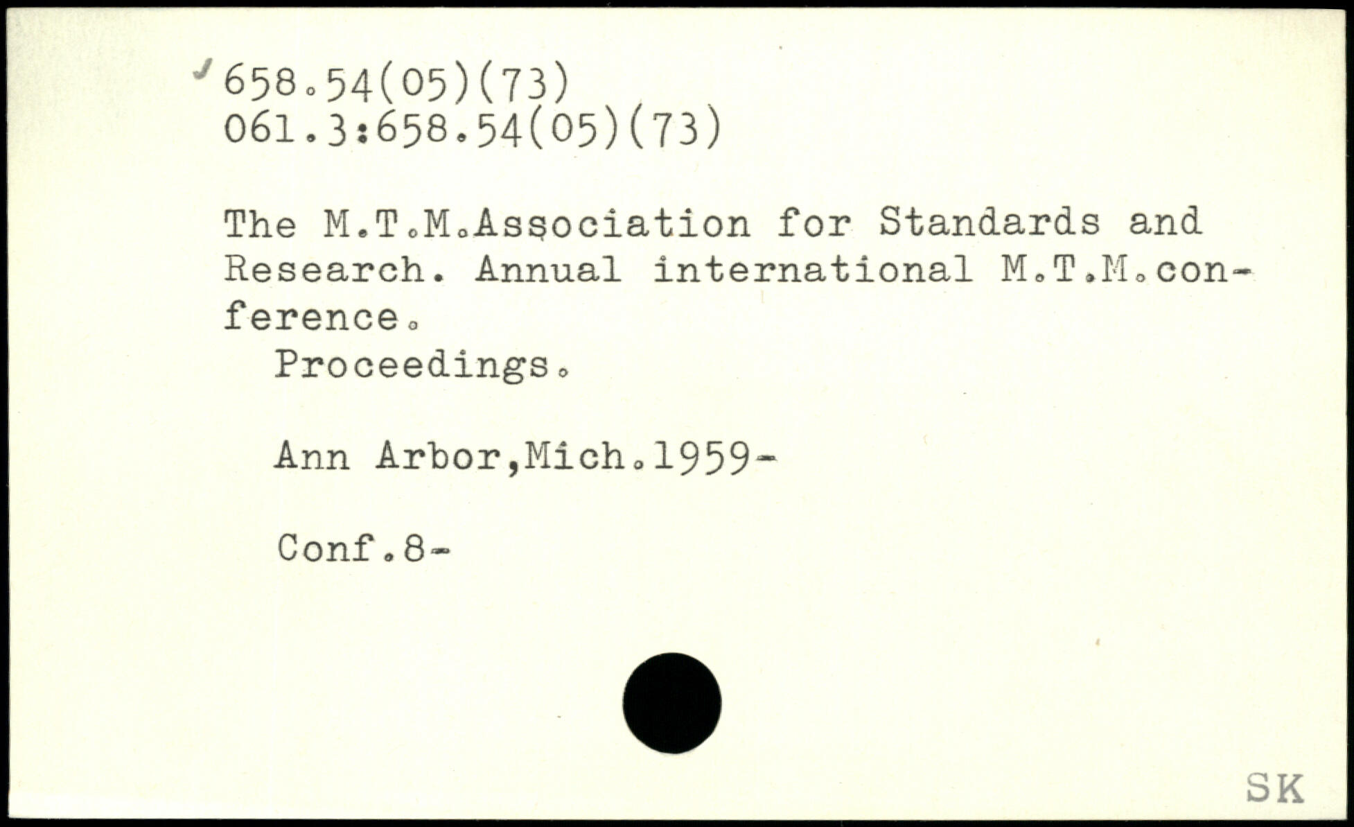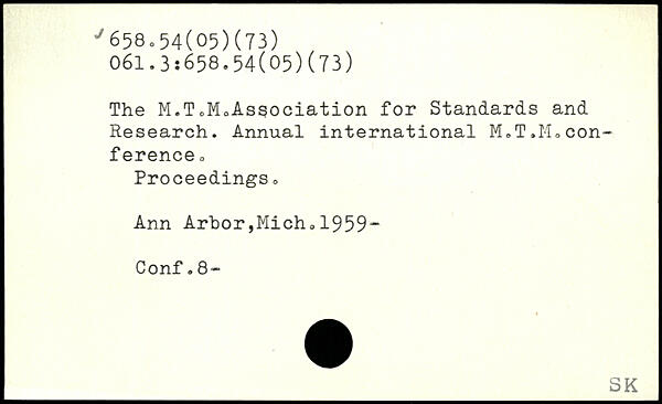 The M.ToMoAsgociation for Standards and Research. Annual international M.T.M.conference o Proceedings , Ann Arbor,Micho1959“ Conf.8-