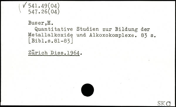 Quantitative Studien zur Bildung der Metallalkoxide und Alkoxokomplexe.