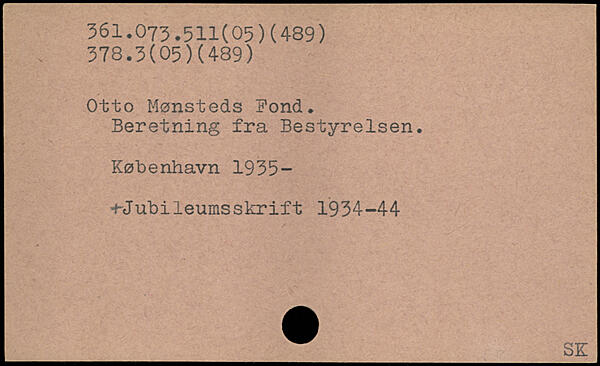 Otto Mønsteds Fond, Beretning fra Bestyrelsen.