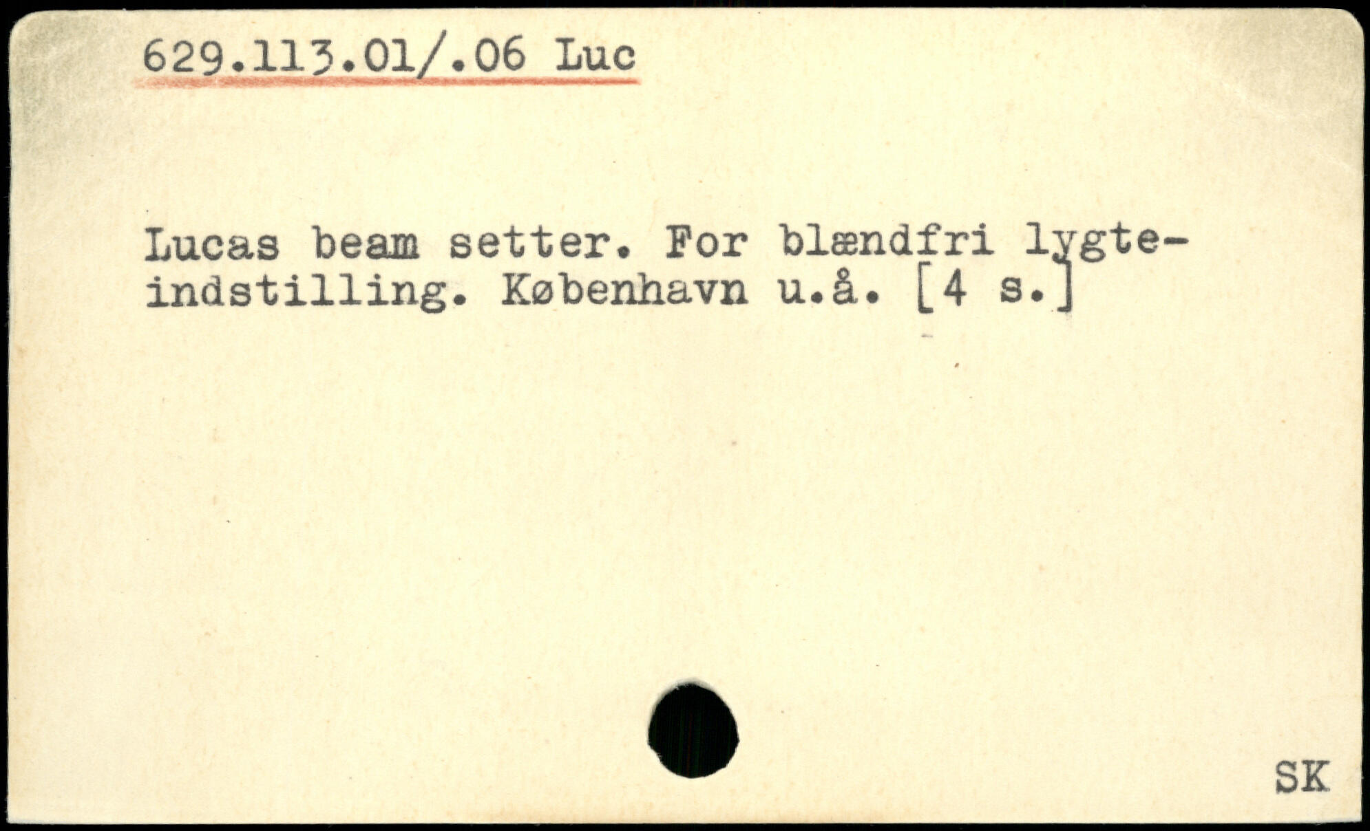 Lucas beam setter. For blændfri lygteindst1111ng. København u.å. [