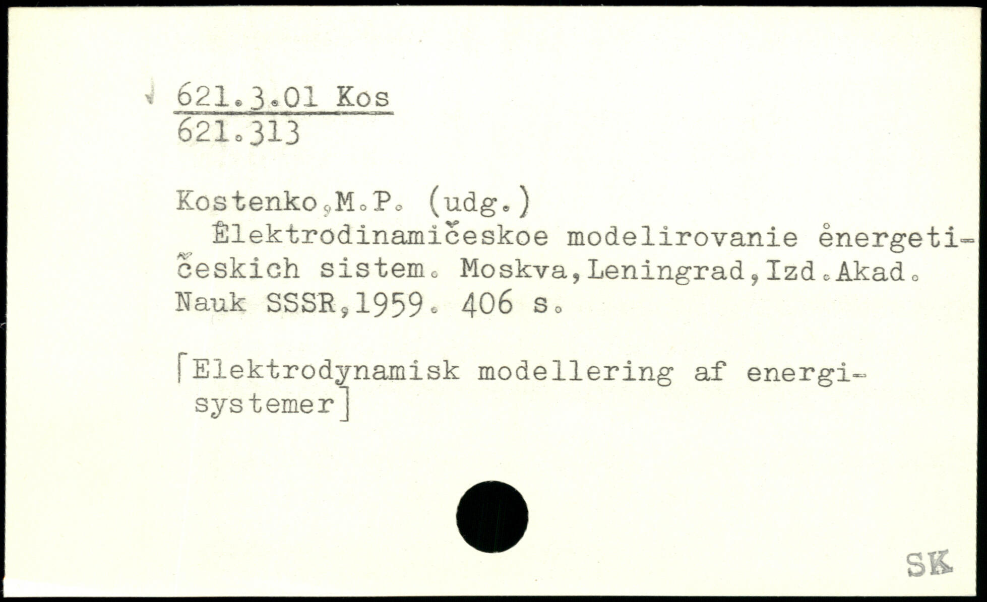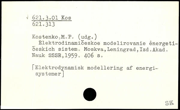 KostenkooM0P® (udg,) Élektrodinamiceskoe modelirovanie energeti-ceskich sistem, Moskva,Leningrad,Izd.Akad. Nauk SSSR,1959. 4O