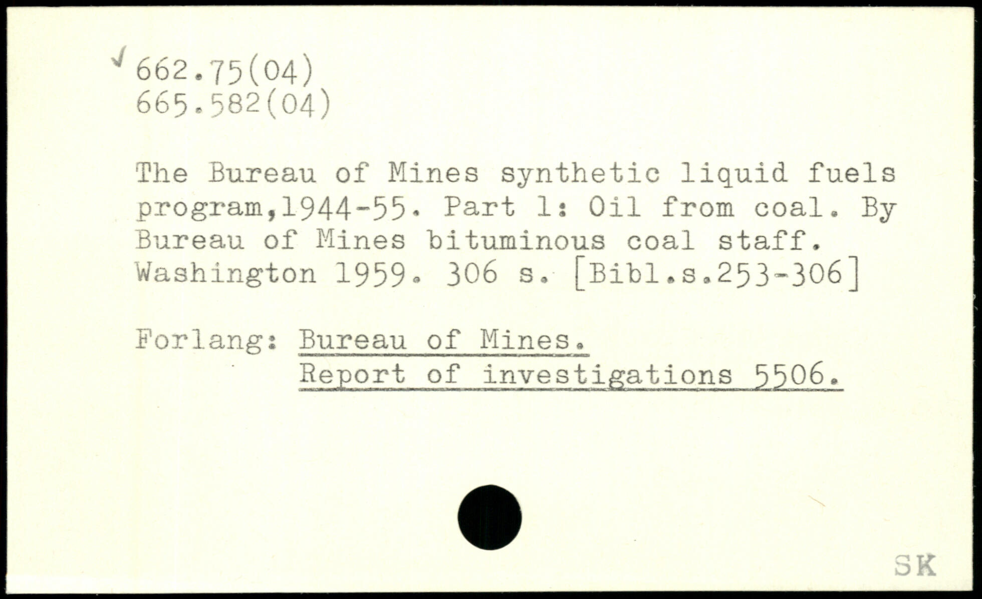 The Bureau of Mines synthetic liquid fuels program,1944-55. Part 1: Oil from coal. By Bureau of Mines bituminous coal staff.